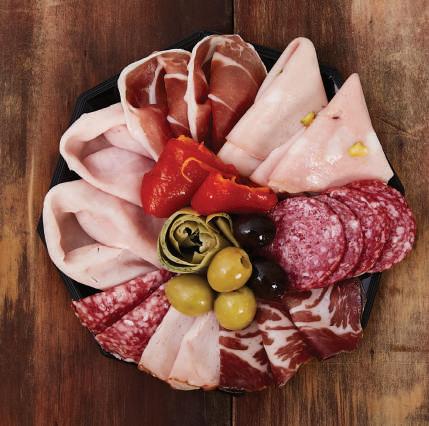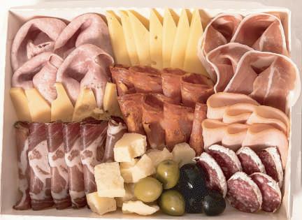Jam贸n Crudo, Jam贸n Cocido, Salame Dolce, Lomo munich, Bondiola Casera, Mortadela con Pistachios, Salame tipo Piamont茅s picado 铿乶o, Morrones en aceite, Coraz贸n de Alcaucil , Aceitunas Verdes y Negras Descarozadas