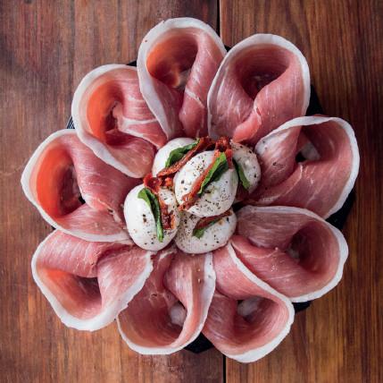 12 meses de maduraci贸n, Mozzarella Fior di Latte con Tomates Secos y Albahaca