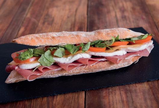 Jam贸n Cocido tipo Italiano, Mozzarella Fior di Latte, Queso ahumado con Tomate y R煤cula.