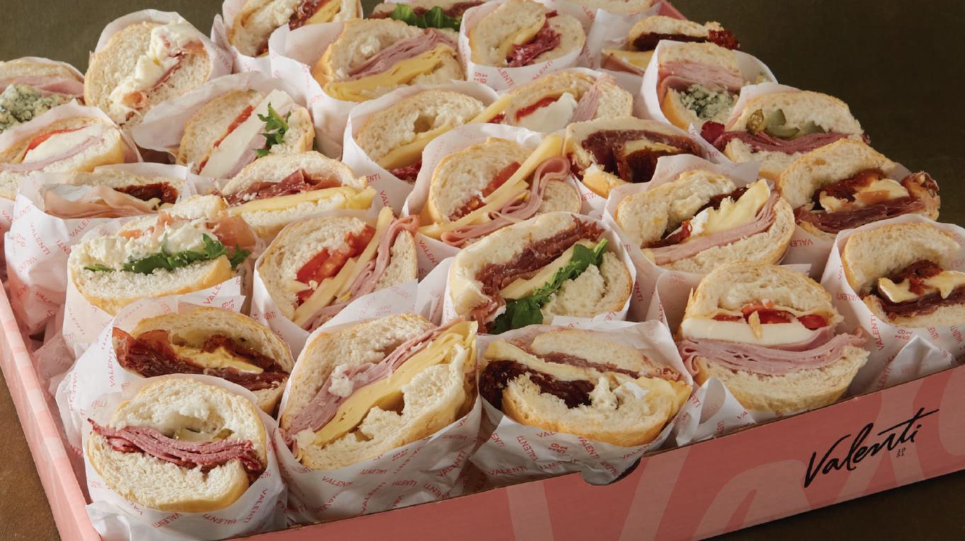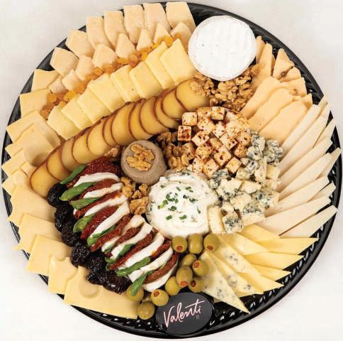 Suisse Alem谩n, Jam贸n Crudo Tipo Parma 12 meses de Maduraci贸n, Jam贸n Natural Valenti, Lomo Munich Ahumado, Salame tipo Italiano, Mortadela con Pistachio, Pat茅 al Champagne, Aceitunas Negras Descarozadas, Corazones de Alcauciles, Aceitunas Verdes rellenas con Morr贸n, Damascos, Nueces Peladas, Tomates Secos.