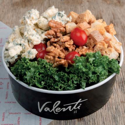 Queso Azul A铿乶ado especial, Croutones, Nueces, Selecci贸n de Hojas verdes, Brotes y Tomates cherr y A z u l