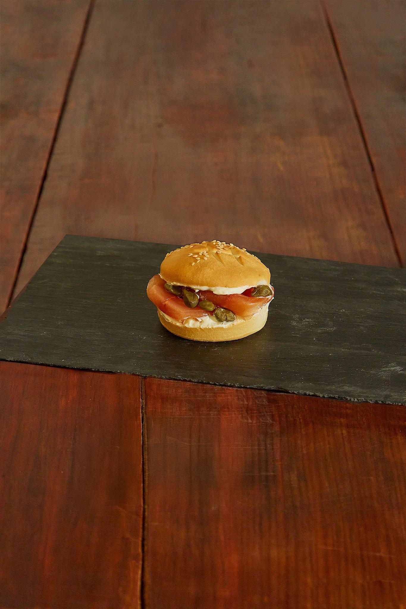 Salmón ahumado del Pacífico con queso crema y alcaparras
