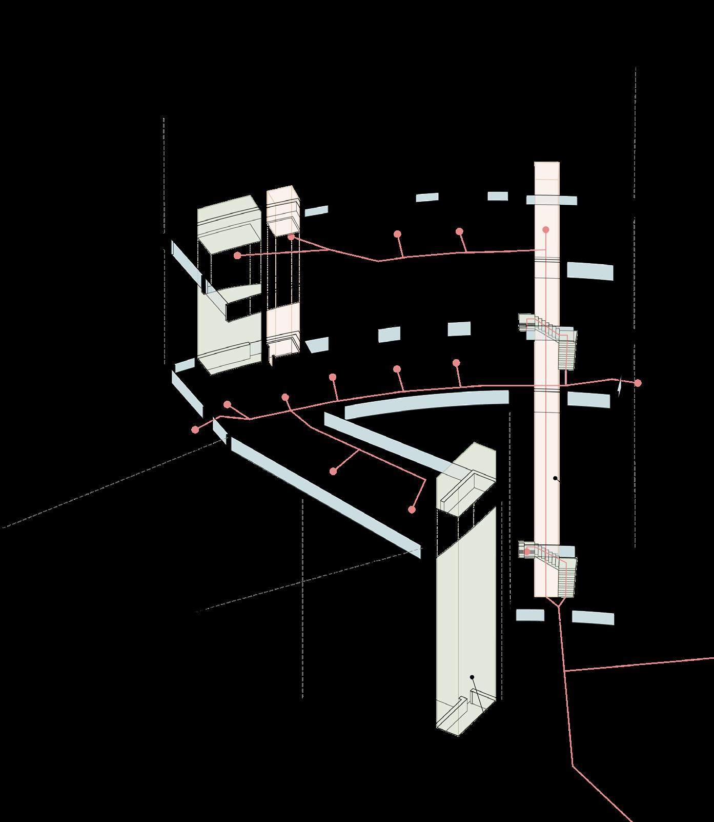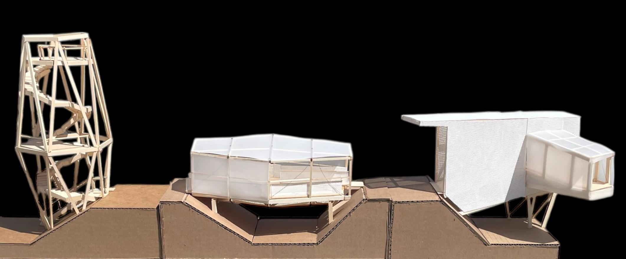 This group of small projects was a three-week exploration into structural sytems and its hierarchies. The tower, bridge, and cantilever share similarities between their material palette and basic geometries. Each model aims to give the user a unique viewing experience, focusing on a smaller scale for the individual.