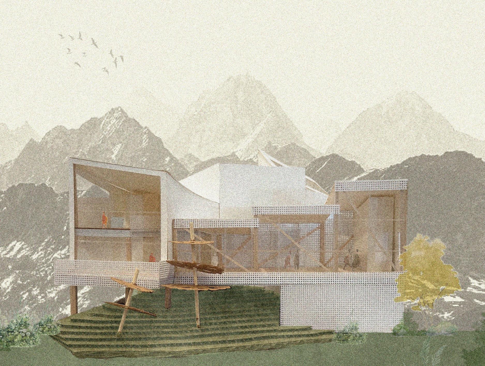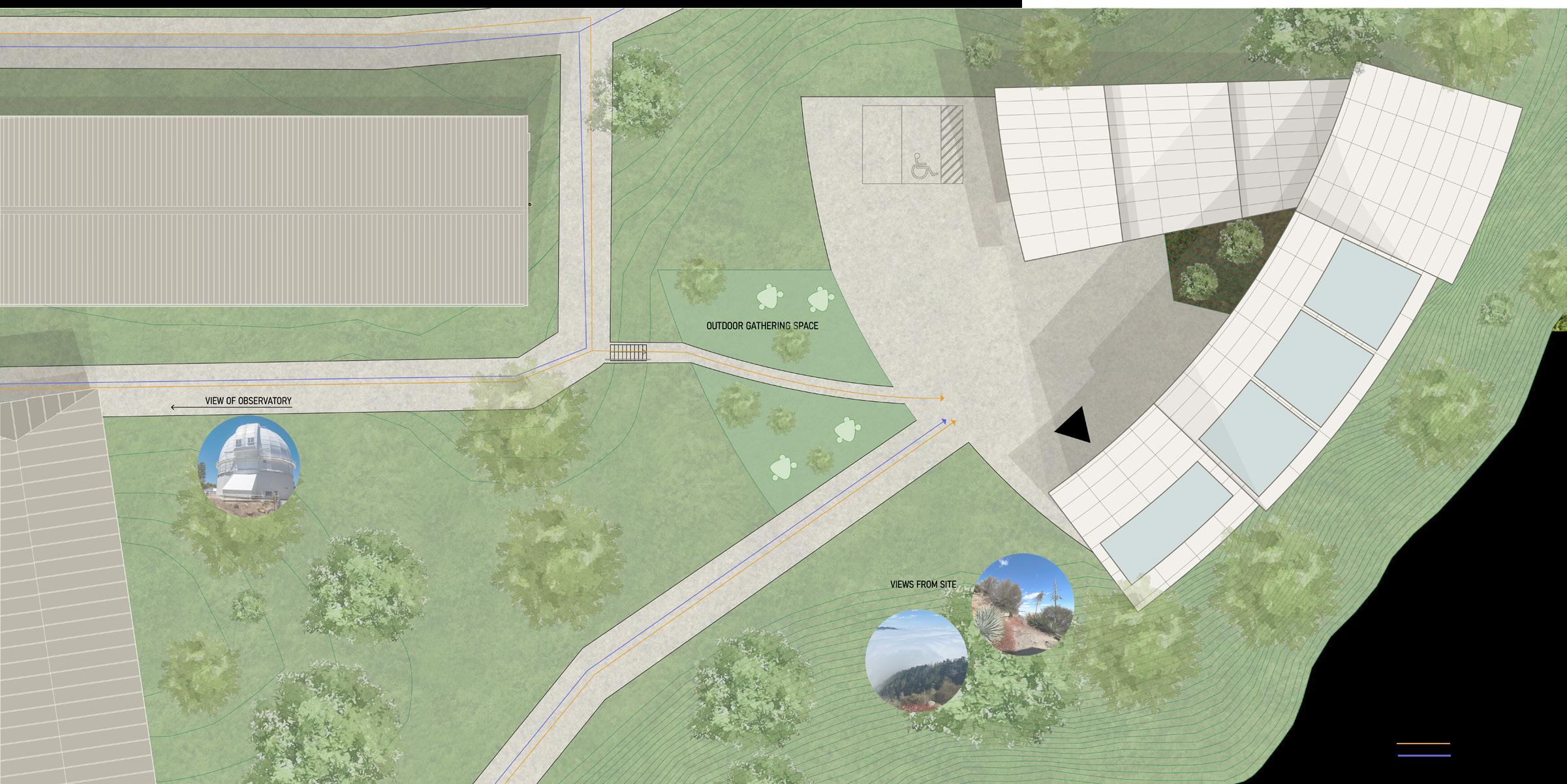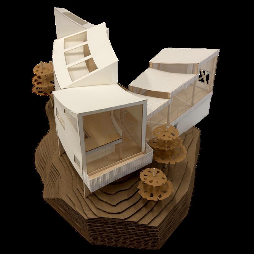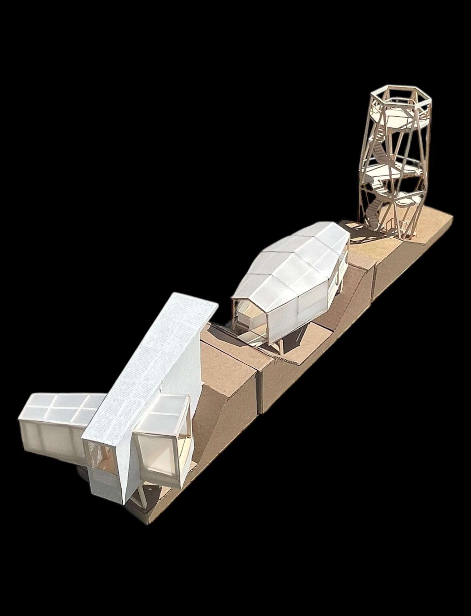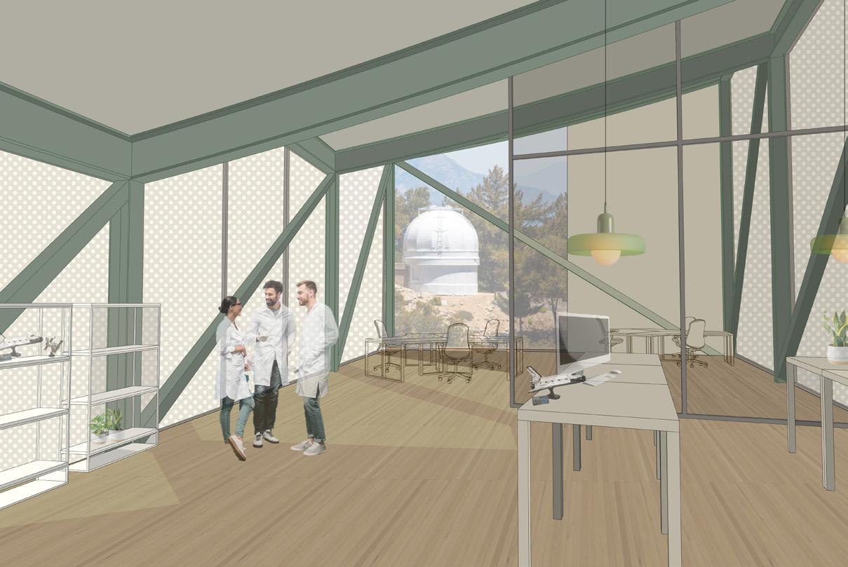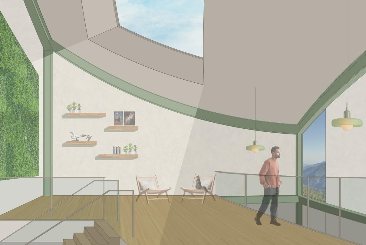 This project connects with the sky above through its sculptural roof, underlining the importance of the work done in the observatory. This project responds to site conditions by levitating parts of the program over the natural landscape, leaving it as unchanged as possible. This strategy also allows for optimal views, further immersing visitors and inhabitants into their surroundings.