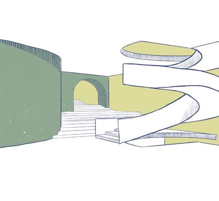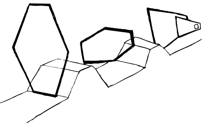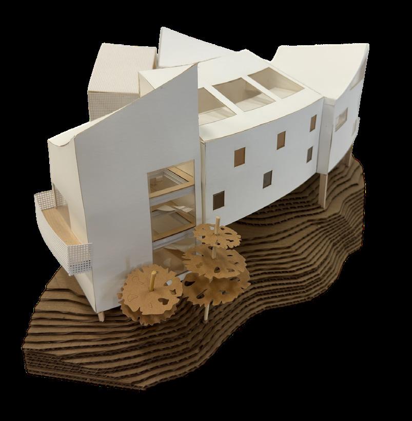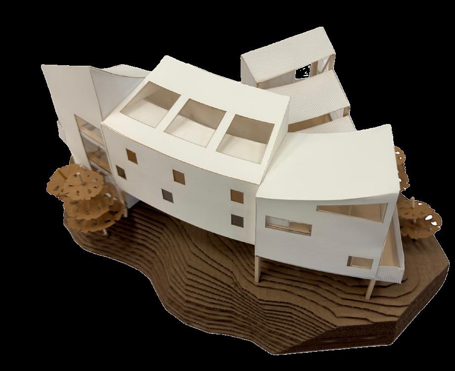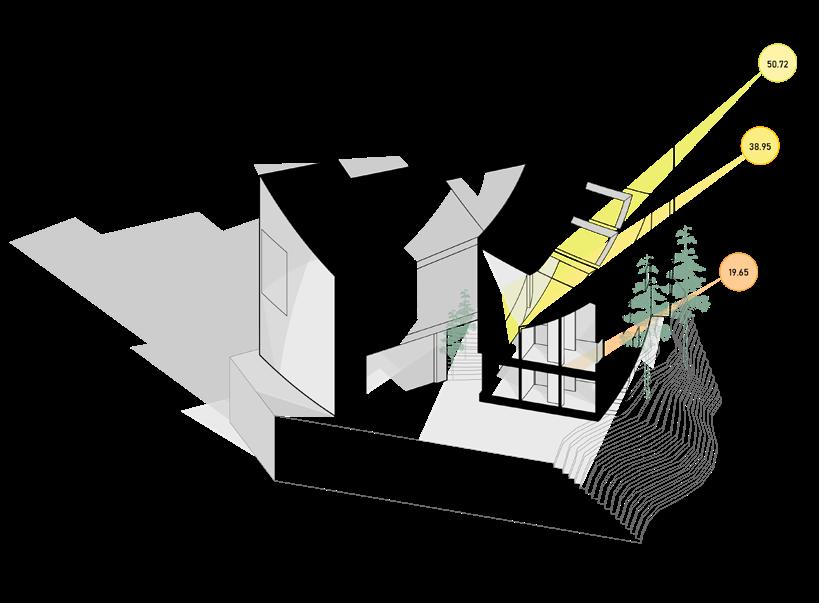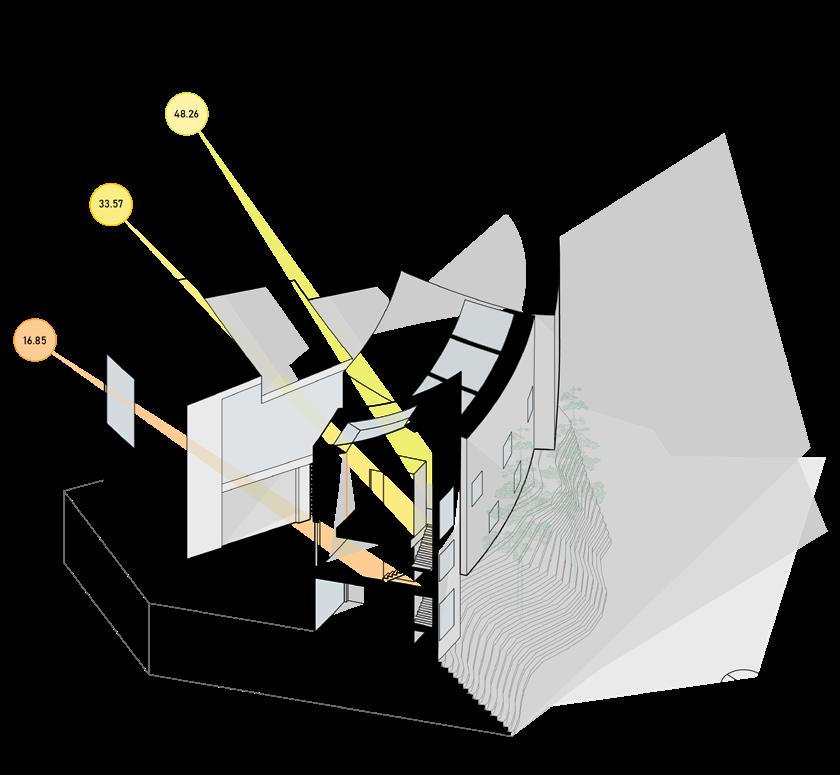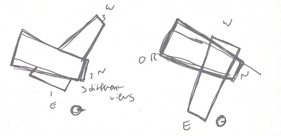 COMBINED IDEAS TO CREATE PARTI: TWO SHAPES INTERSECTING, CREATING THREE UNIQUE VIEWING PLATFORMS