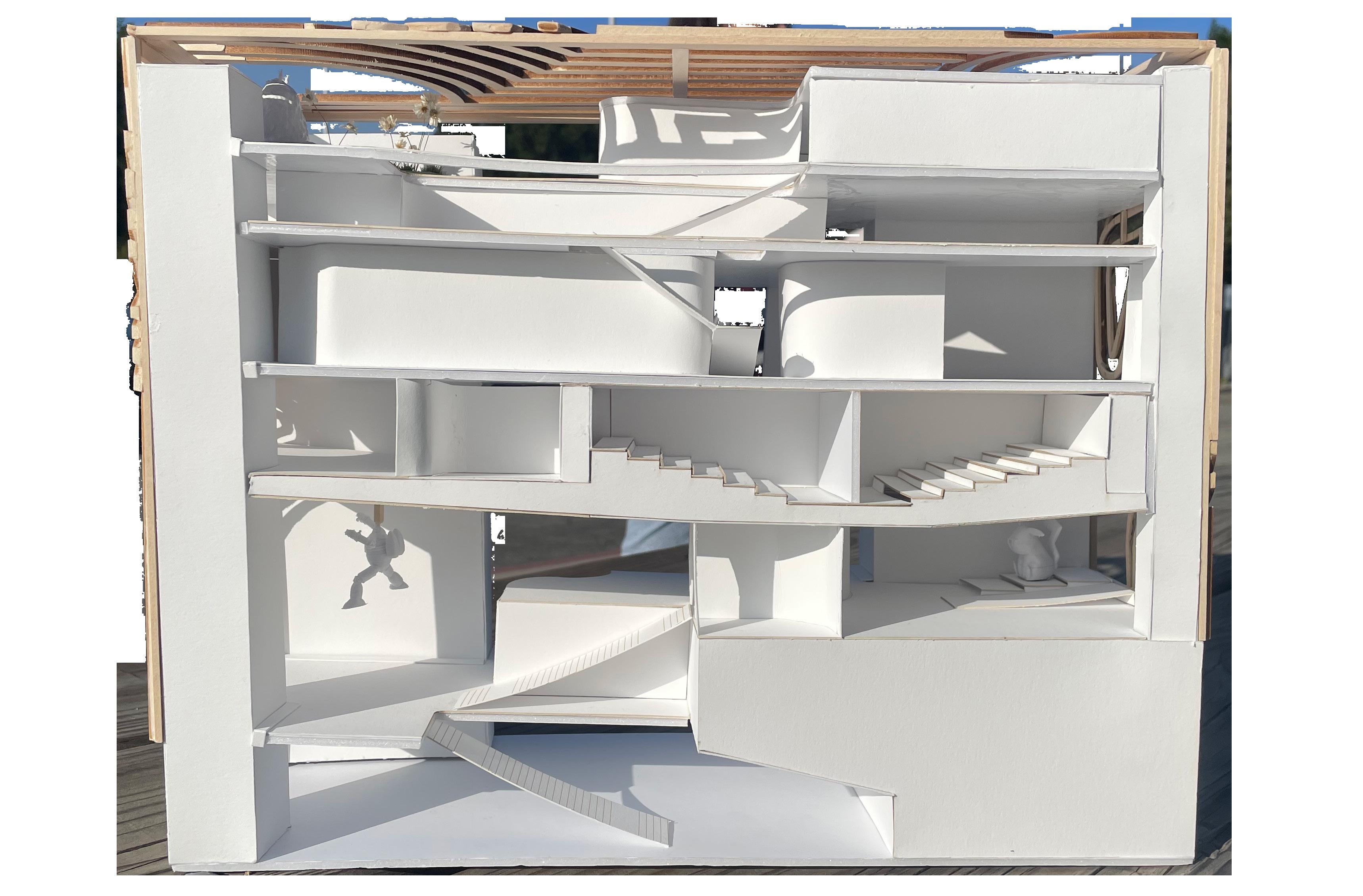 -COMBINED BOTH IDEAS TO CREATE PARTI -TWO SHAPES INTERSECTING, CREATING THREE DIFFERENT VIEWING AREAS