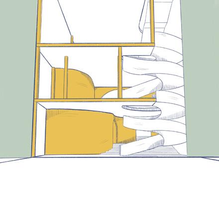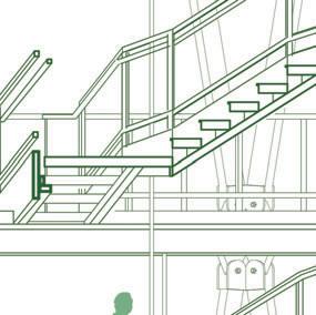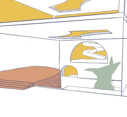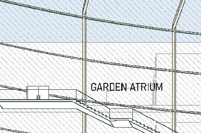EACH VOLUME HAS A DIFFERENT LEVEL OF ENCLOSURE. VOLUME A IS PARTIALLY ENCLOSED, ONLY WITH PERFORATED METAL CLADDING THE STRUCTURE. VOLUME B IS FULLY INSULATED AND ENCLOSED WITH GLASS AND POLYCARBONATE CLADDING.