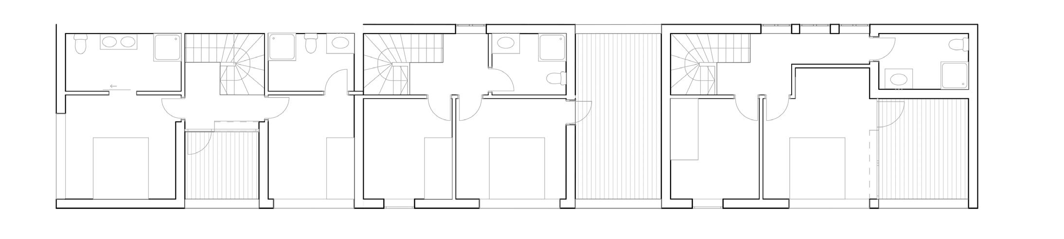 Le rez de chaussée accueille 4 T3. Les étages sont occupés par 4 logements organisés en duplex, desservis par deux escaliers et deux coursives à l'extérieur.