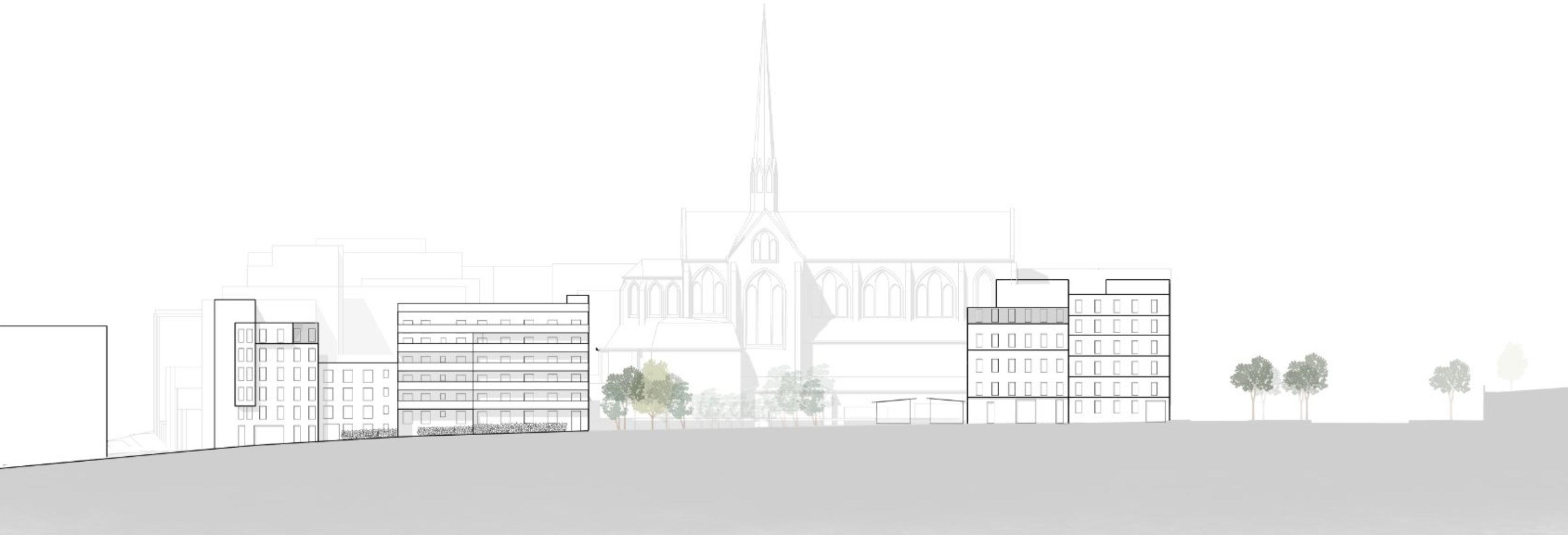 Mon projet de deux immeubles avec logements sociaux s’inscrit dans un terrain non bâti, entre la place de l’église et l’un des principaux