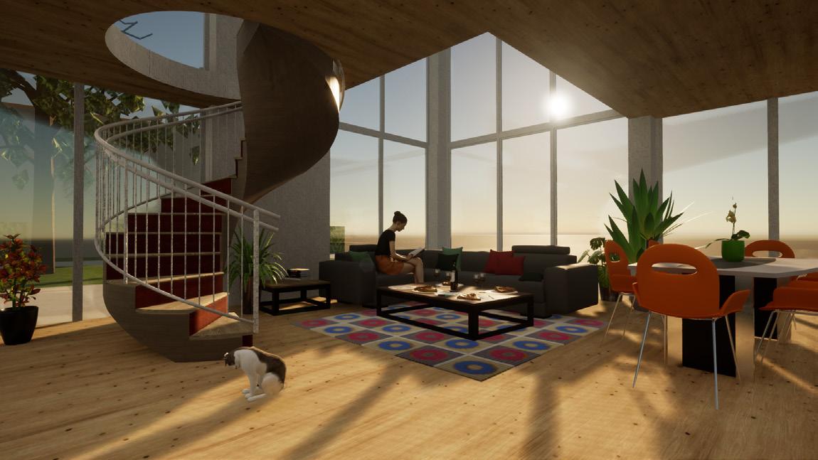 Les fonctions sont interchangeables, grâce au sous-sol élevé de la maison, à partir duquel l'ameublement peut être retiré ou caché selon la fonction requise, permettant de vivre chaque environnement avec le maximum de surface. Inspirée du design japonais, la salle à manger a une pop-up table qui se dissimule dans le sol lorsque l’on n’a pas de l’utilité.