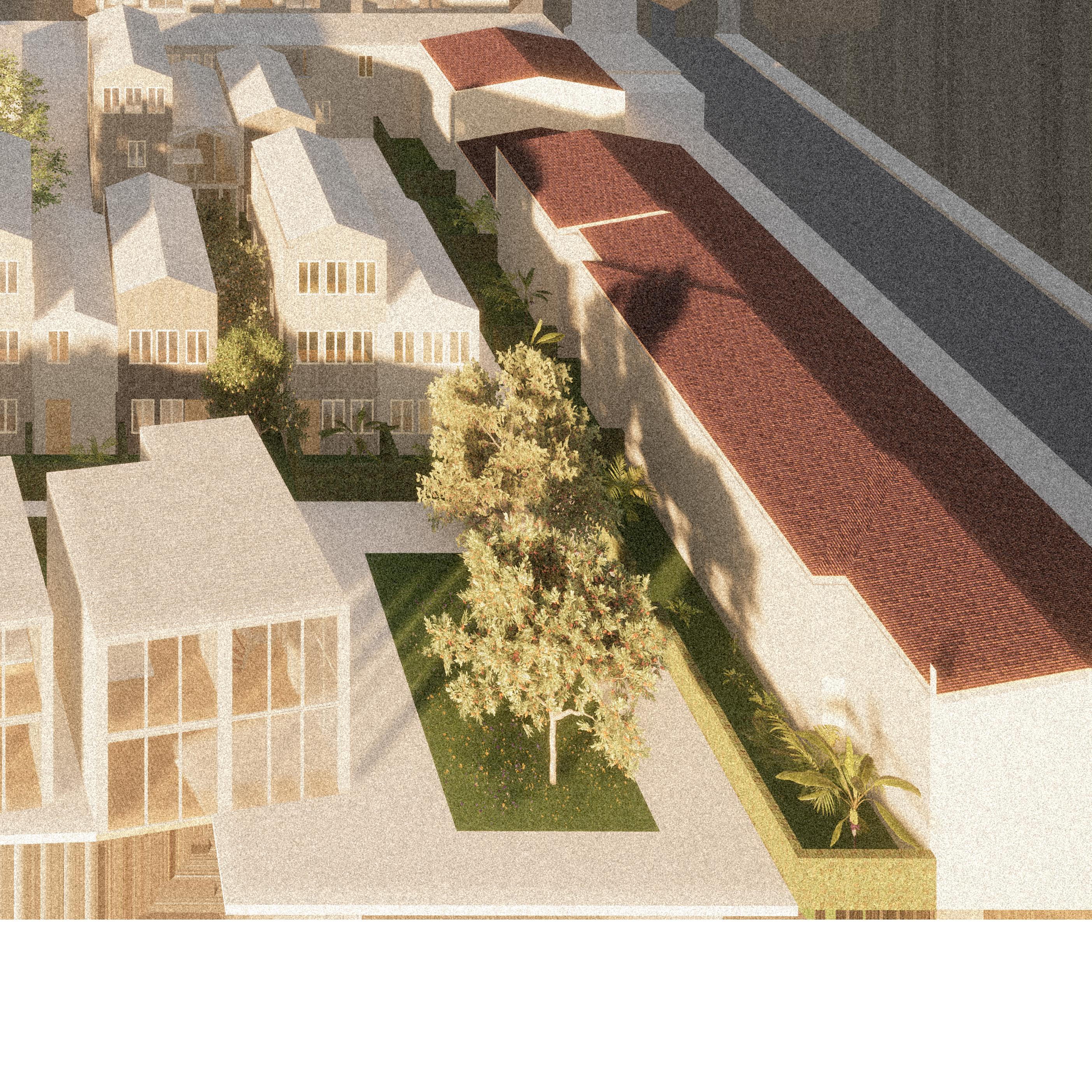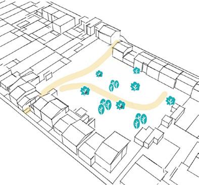 Cette démarche suppose d’assurer une alternative aux maisons existantes, ainsi elles seront toutes orientées vers un cœur d’îlot verdoyant et privatif afin d’organiser sainement et efficacement la refonte du tissu urbain.