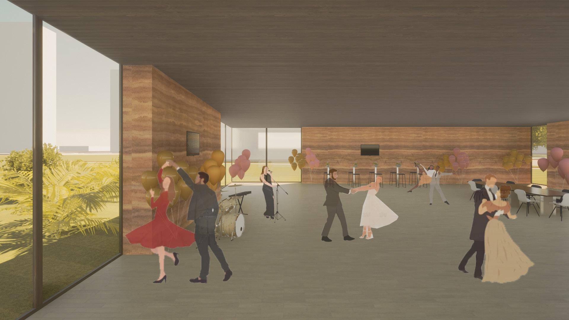 Plutôt que d'opter pour une ferme urbaine traditionnelle, nous avons conçu un espace multifonctionnel, la halle de vente alimentaire pour les producteurs locaux, répondant aux besoins locaux en alimentation. Ce lieu de commerce accueillera également un restaurant solidaire qui doit pouvoir nourrir directement (et à bon marché) la population du quartier à des tarifs mis au niveau de revenus de ses habitants.
