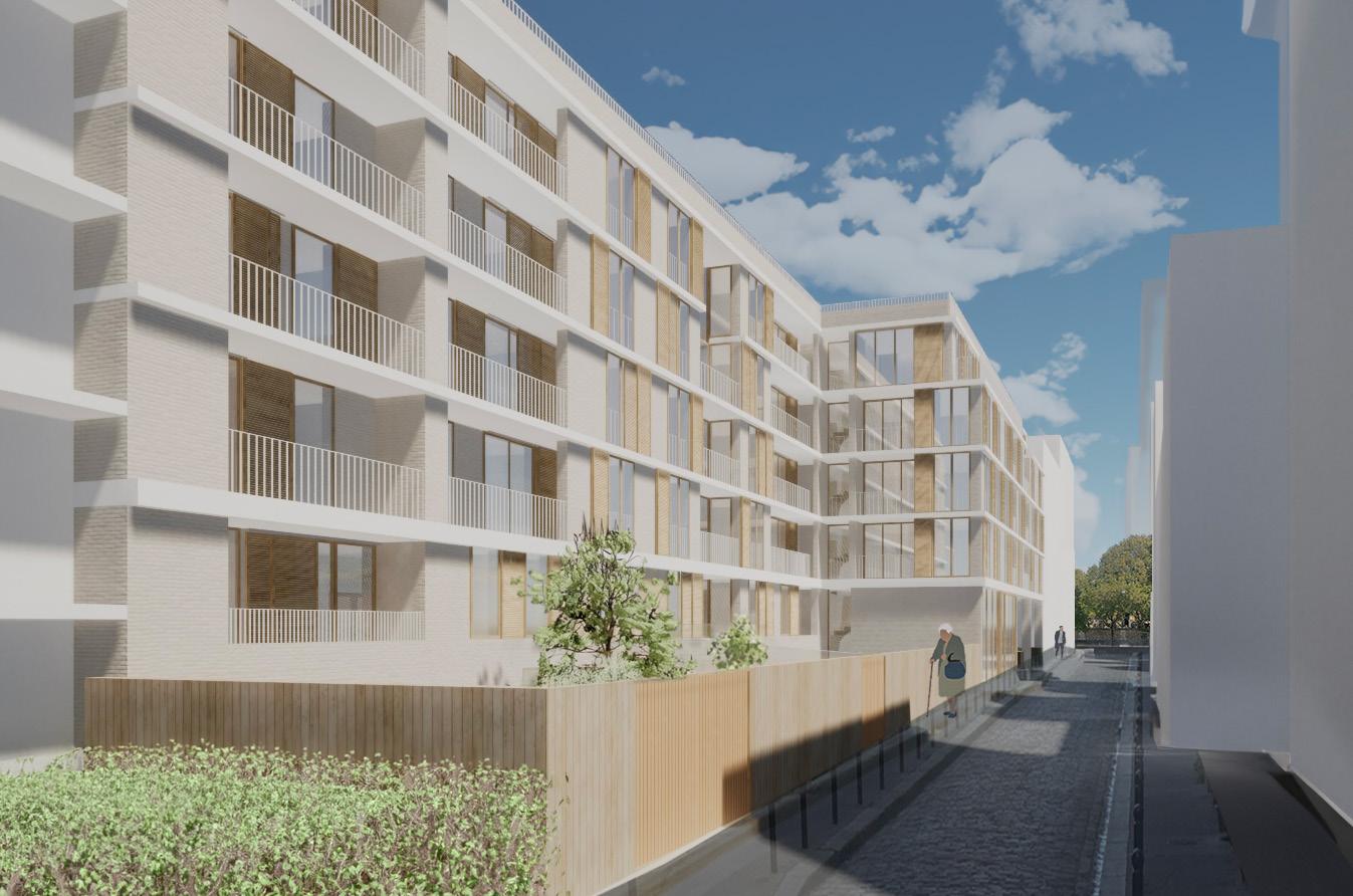 Le projet comprend également l’aménagement d’un parc urbain avec une aire de jeux dans la cour, accessible depuis les trois rues - par les deux tunnels séparés sous les bâtiments et par une ruelle.
