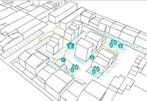 Ce quartier accueillant et inspirant composera alors un tissu urbain hétérogène aux formes urbaines diverses tout en redéfinissant un ensemble, une communauté, une société.