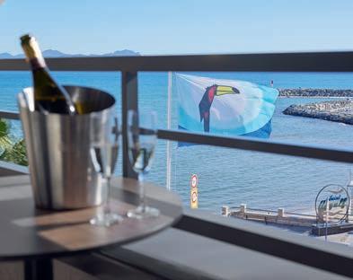 Français À deux pas de la plage, l’Hôtel Saint-Aygulf vous attend pour des vacances inoubliables sur la Côte d’Azur. Et elles le seront d’autant plus grâce à notre tout nouveau club de plage, La Plagette. Installezvous confortablement sur un transat avec un cocktail bien frais ou prenez place à une table pour un délicieux déjeuner, un dîner gourmand ou un apéritif face à la mer. Laissez la vue imprenable vous faire oublier le quotidien. Pour de vraies vacances avec un grand V !