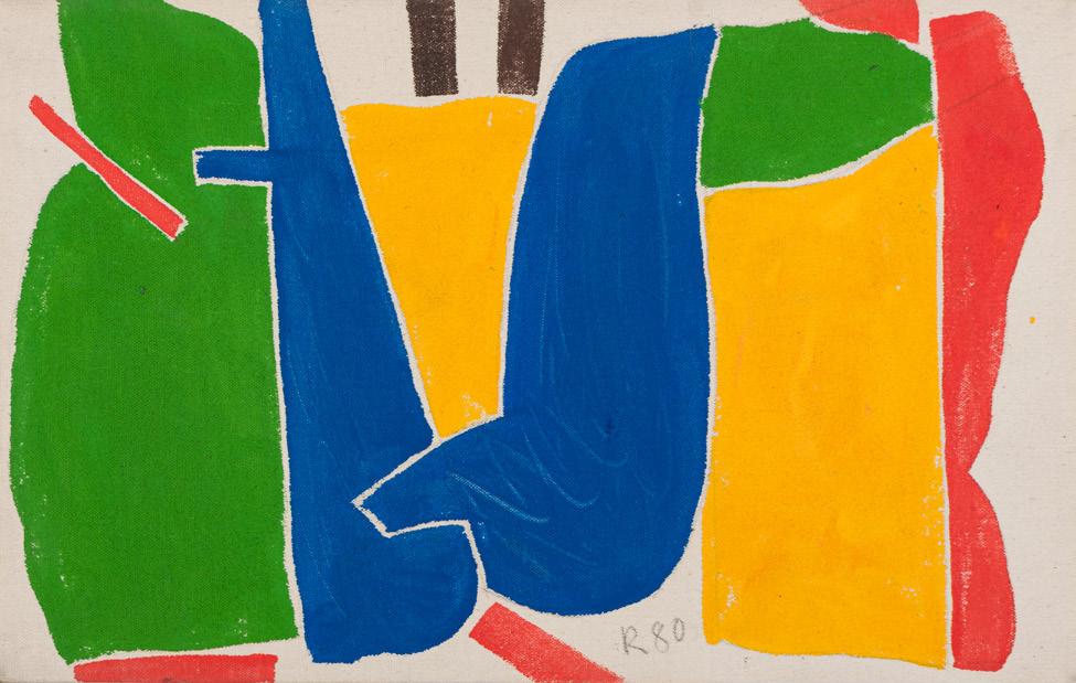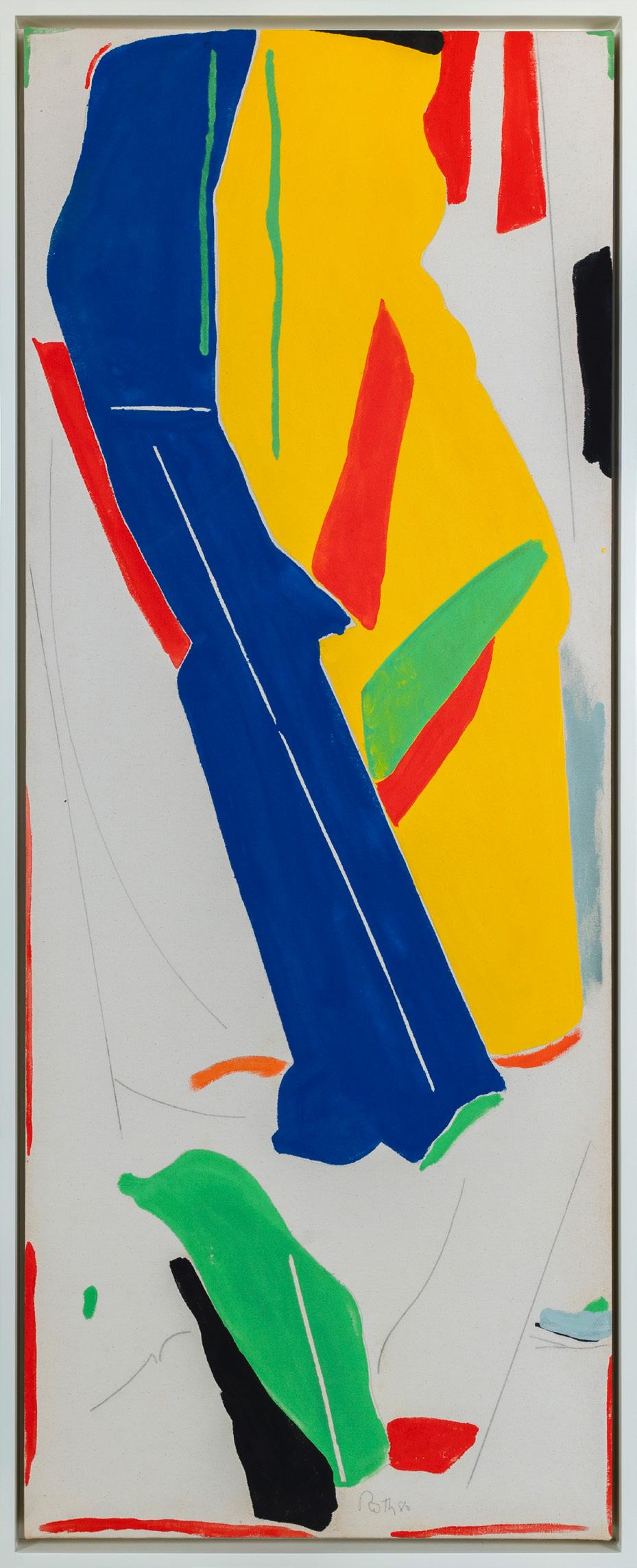 INSPIRED BY MAN RAY’S 1916 PAINTING, “THE ROPE DANCER ACCOMPANIES HERSELF WITH HER SHADOWS” (IN THE COLLECTION OF THE MUSEUM OF MODERN ART), JACK ROTH DEVELOPED HIS ROPE DANCER SERIES (1980), TRANSLATING THE EARLIER WORK’S LAYERED ABSTRACTION AND EVOCATION OF A TIGHTROPE PERFORMER’S SHIFTING SHADOWS INTO A LANGUAGE OF VIBRANT COLOR AND POISED, SIMPLIFIED FORM. JACK ROTH (1927–2004), A NEW YORK–BASED ABSTRACT PAINTER WHOSE PRACTICE BRIDGED COLOR FIELD PAINTING WITH A LYRICAL, GESTURAL SENSIBILITY, IMBUED THE SERIES WITH A DYNAMIC SENSE OF MOVEMENT AND BALANCE. JACK ROTH WAS REPRESENTED BY THE KNOEDLER GALLERY IN NEW YORK CITY.