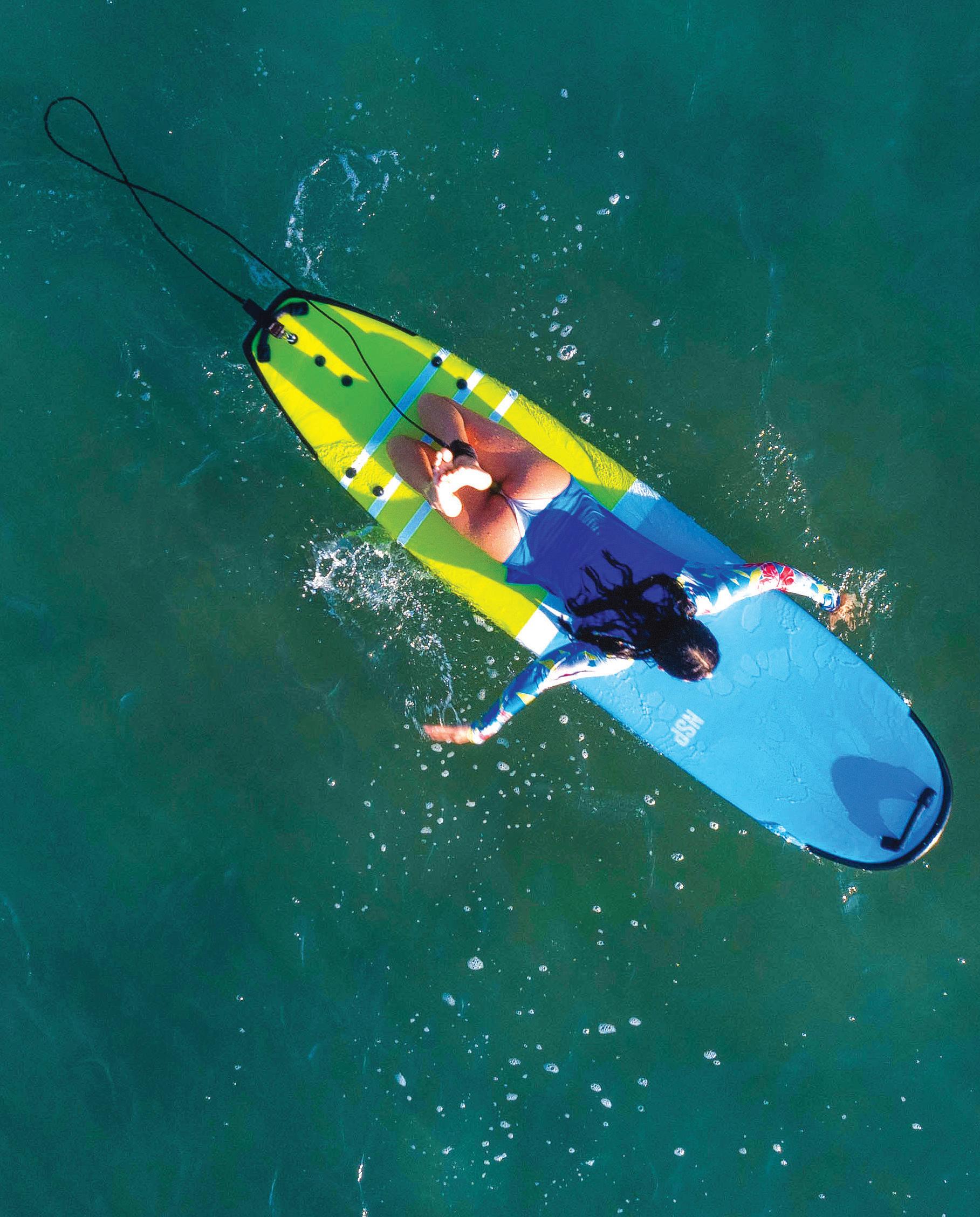 Our cover model embarked on a surfing adventure at La Lancha Beach. / Nuestra modelo de portada se embarcó al encuentro del surf en Playa La Lancha. @carolinareyes_