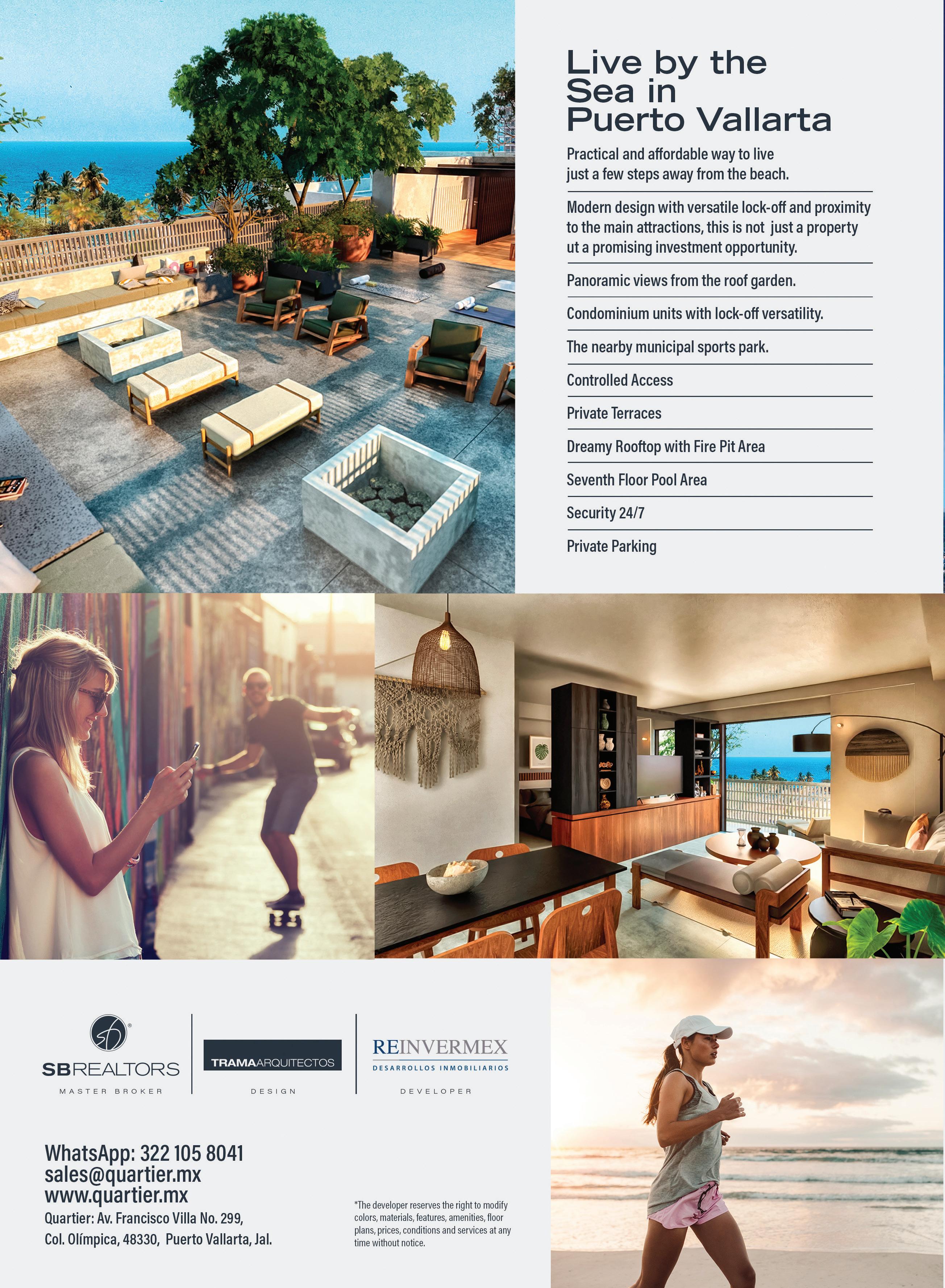 For more information and to learn about the availability of units in Quartier · Condos + Flex, contact the real estate agent in charge of the development via email at sales@quartier.mx or by phone at 322 105-8041. Visit quartier.mx.