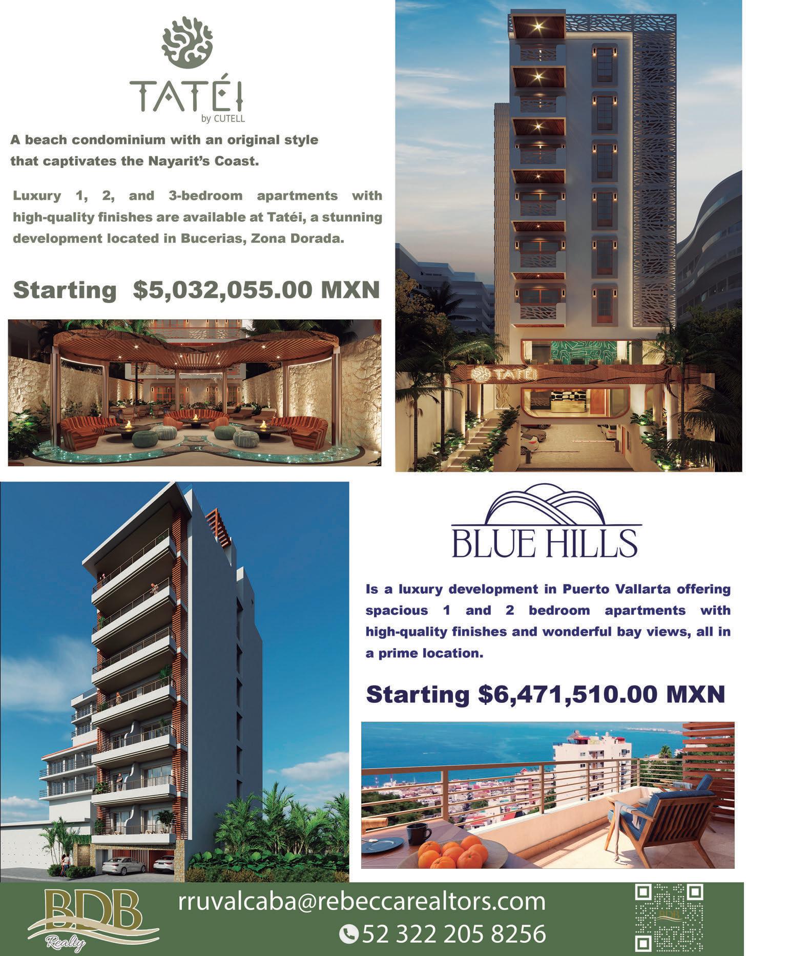 www.VallartaRealEstateGuide.com 2023 23 contact@boardwalkrealtypv.com 1-855-239-0640 A NEW ERA OF LUXURY LIVING A NEW CHAPTER IN RESIDENTIAL SOPHISTICATION rocio@boardwalkrealtypv.com Cel. +52 322 150 6869 rocio@boardwalkrealtypv.com Cel. +52 322 150 6869 PRE SALE | FROM THE UPPER 300’S PERFECTLY LOCATED IN A DOUBLE GATED COMMUNITY TOWER II 5 MINUTES AWAY FROM THE BUCERIAS BEACHES PRE SALE | FROM THE UPPER 300’S DELIVERYJAN2025 DELIVERINGNOW