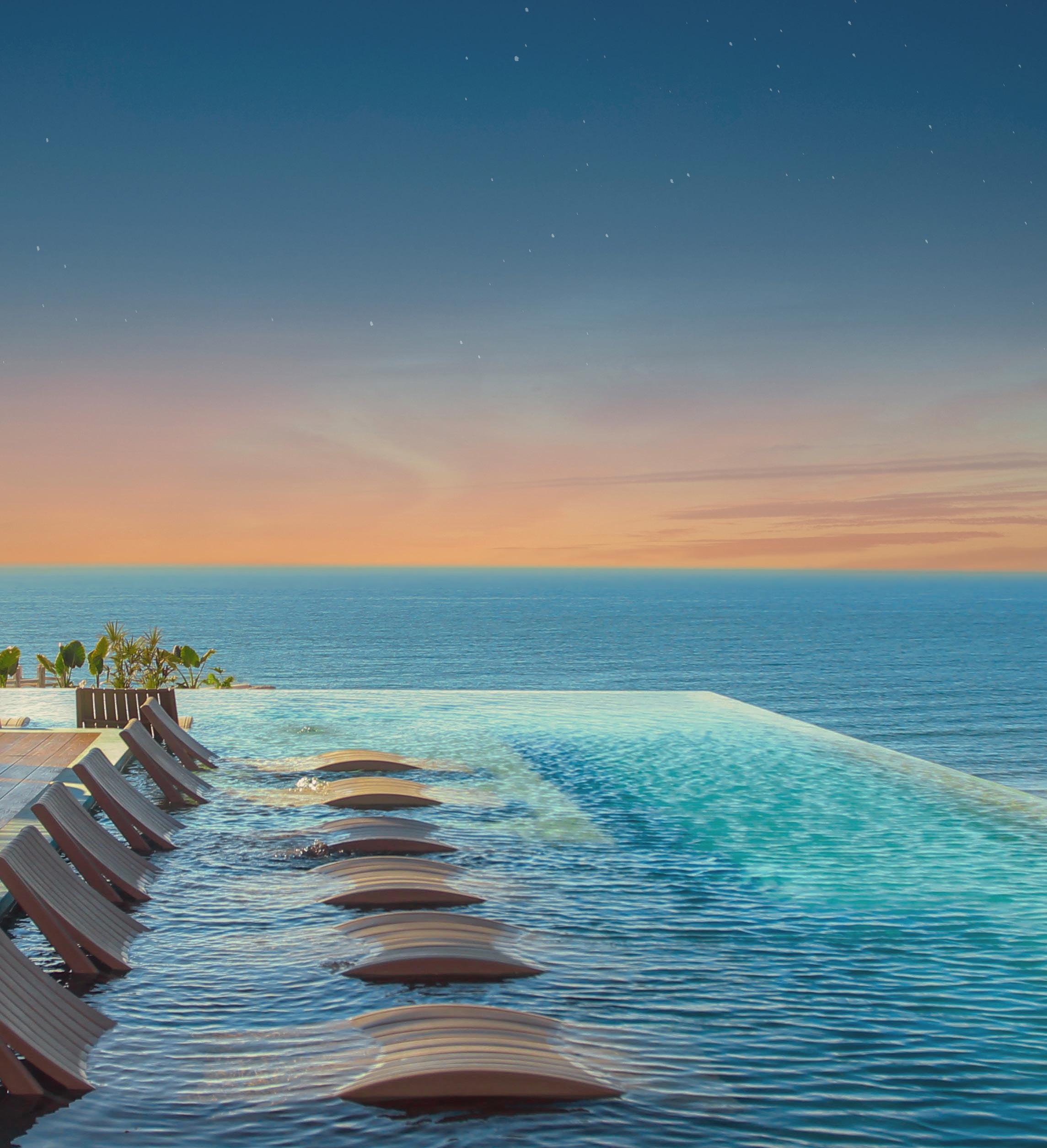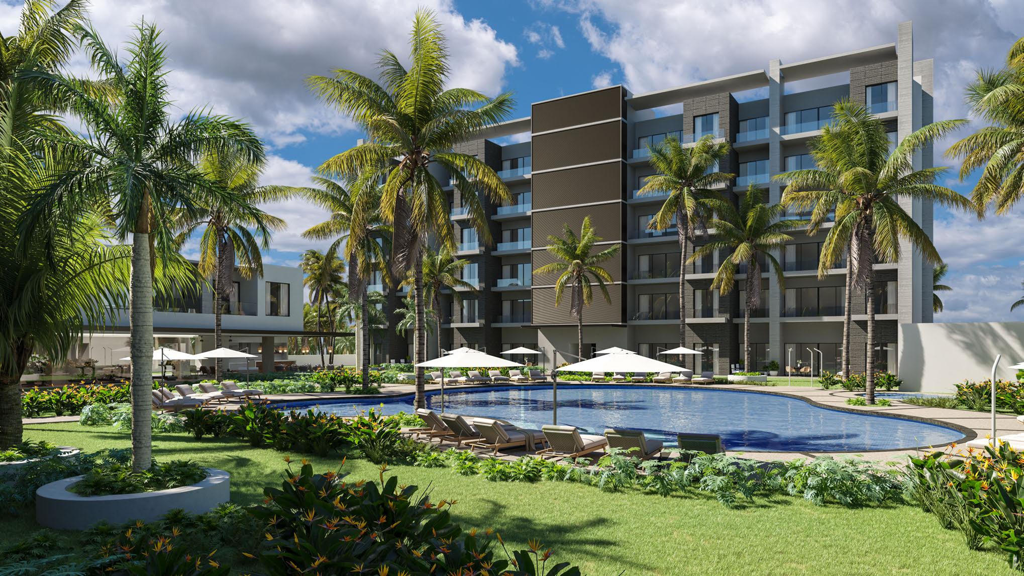 Piscina frente a la playa, piscina infinity y snack bar Club de playa, fitness center, spa y centro de bienestar. Lounge de residentes, kids club y hub creativo. Centro de deportes acuáticos. Servicio de concierge