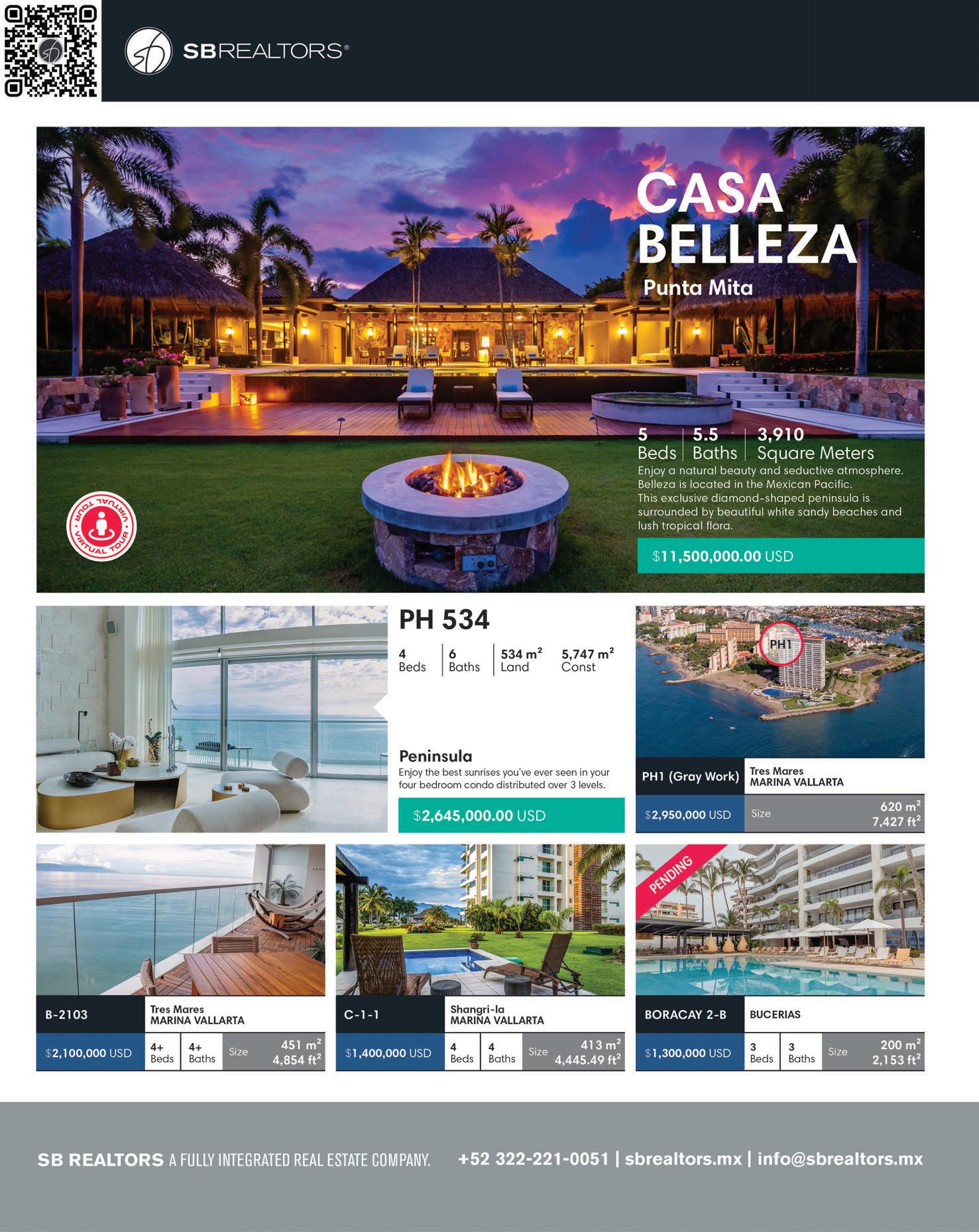 info@vallartarealestateguide.com • 322-221 0106 66 March / Marzo / 2023 LOT SAYULITA'S BEST BEACHFRONT LOT IS FOR SALE 6,285 m² 67,651.17 ft² +52 322-221-0051 | sbrealtors.mx | info@sbrealtors.mx Av. Paseo de la Marina 355-20, Marina Vallarta, Puerto Vallarta, MX Av. El Anclote 202 Loc. 1, Punta de Mita, Nayarit, MX PUNTA DE MITA PUERTO VALLARTA SB REALTORS A FULLY INTEGRATED REAL ESTATE COMPANY. $5,200,000.00 USD REDUCED PRICE CONTACT US FOR MORE DETAILS MARKED AREA IS NOT EXACT, OR MAY VARY. FOR RENT 4 COMMERCIAL SPACES 4 LOCALES EN RENTA L 114 L 116A L 116B L 118 $45,000.00 MXN $12,500.00 MXN $8,000.00 MXN $125,000.00 MXN 280 40 28 890 m2 m2 m2 m2 Ideales para Oficina-Show Room-Bodega Price per month in pesos plus TAX. Precio por mes, en pesos, más IVA +52 322-221-0051 | sbrealtors.mx | info@sbrealtors.mx Av. Paseo de la Marina 355-20, Marina Vallarta, Puerto Vallarta, MX Av. El Anclote 202 Loc. 1, Punta de Mita, Nayarit, MX PUNTA DE MITA PUERTO VALLARTA SB REALTORS A FULLY INTEGRATED REAL ESTATE COMPANY.
