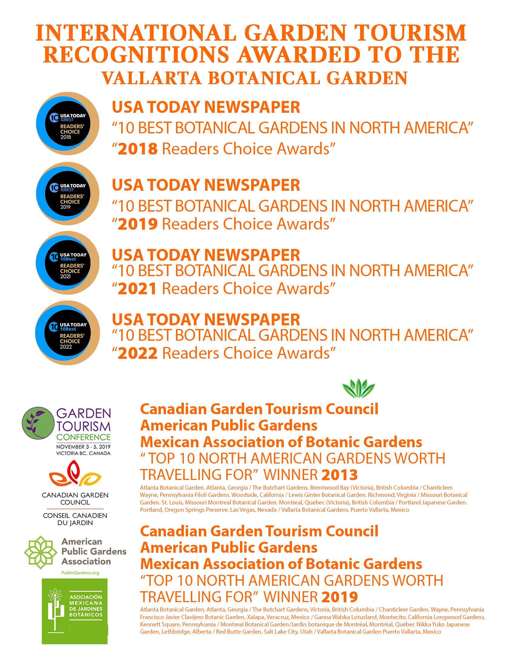 El Jardín Botánico de Vallarta figura entre los más famosos e importantes jardines públicos de Norteamérica, y es el primer jardín fuera de EE.UU. que gana este premio.