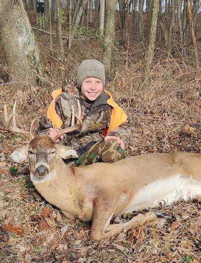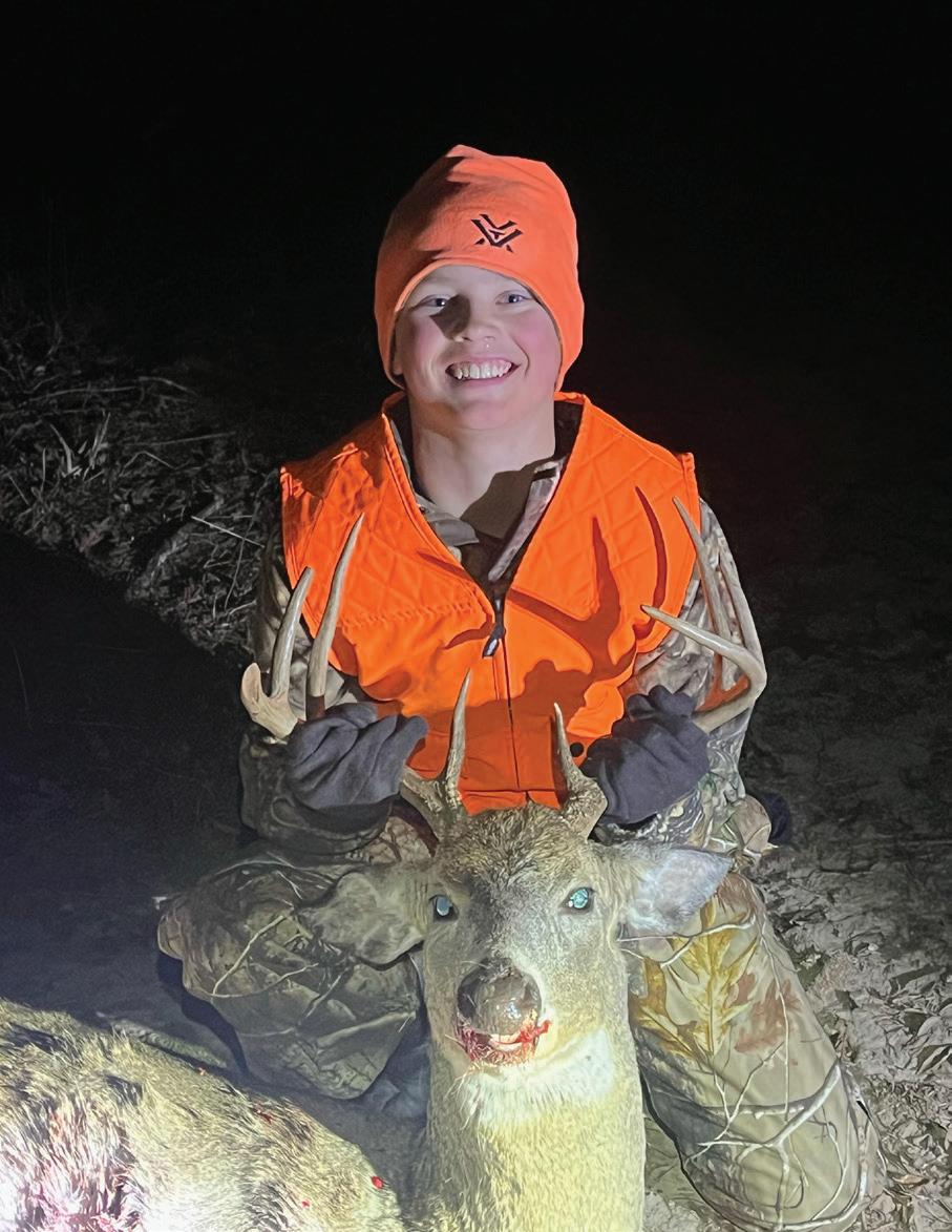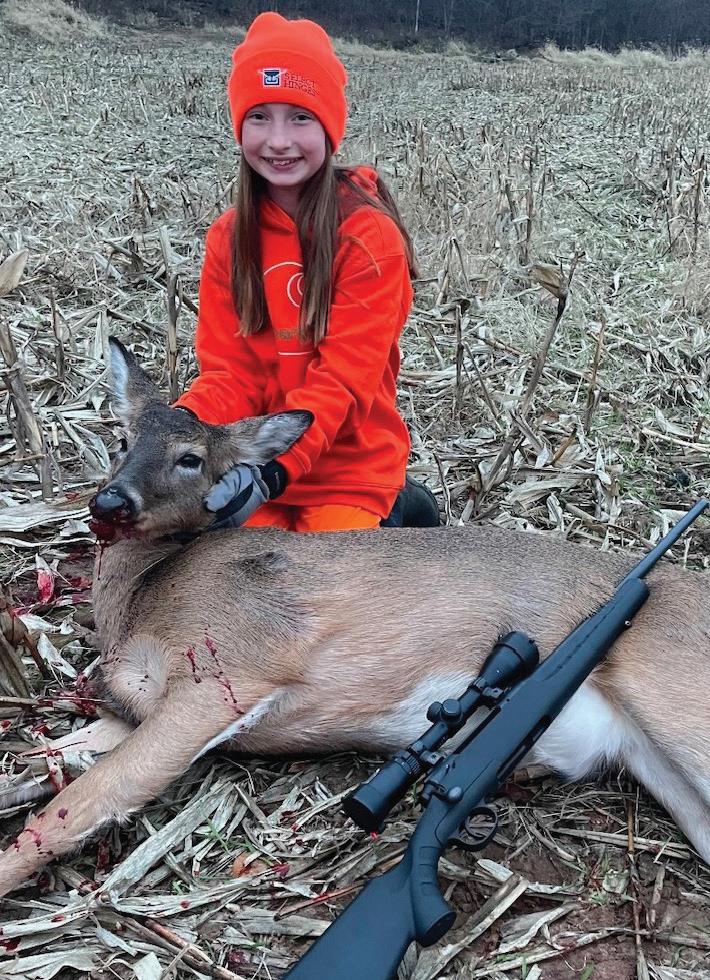 Photo contributed by John Cler Claire Ready, the author's granddaughter, with an unusual Richland county buck.
