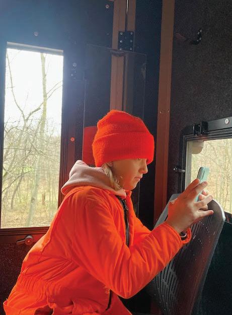 I was happy to be sharing a blind with Claire again. We watched the logging road intently as shots began to ring out in the distance. We did not see any deer until around 8 a.m. A doe and two fawns quickly trotted across the logging road from left to right presenting no shot opportunity. A bit later a doe and small buck headed down the road toward us and turned abruptly into the brush, again, without a shot opportunity. Observing deer is always part of the thrill of the hunt, but we were going to need a bit of a break to have any chance at success.