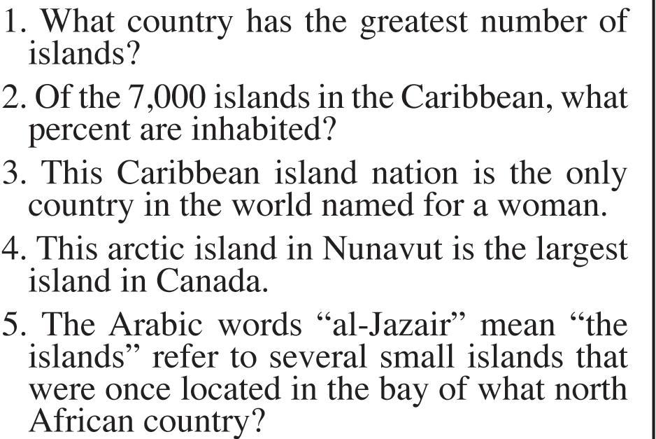 Unusual Islands (from page 3) island rises only 163 feet above sea level at its highest point.