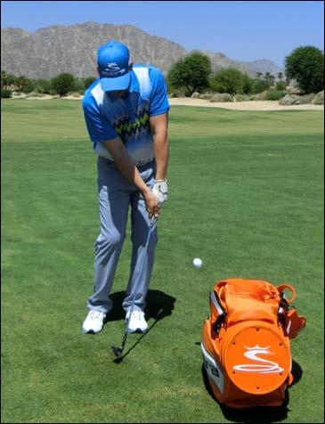 To prove my point that acceleration and deceleration have little to do with effective chipping, try hitting a few chips with your bag about a couple feet in front of your ball. Hit the ball and ground but don’t hit the bag!