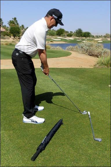 Swinging the club in circles and arcs when you’re trying to hit a shot straight can be quite confusing. Yet, that’s the nature of the club travel relative to a target line. The downswing can be thought of as having a diagonal component to the target line that should help you get it on the right track.