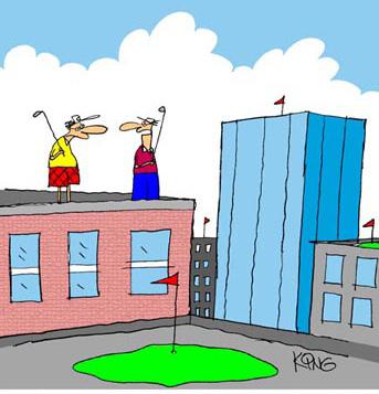 "We've been here two hours and we're only on the third hole! Next time you want to try something new and different, I get to pick the course. "