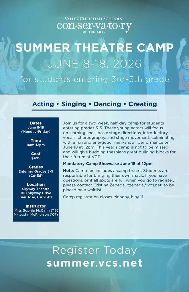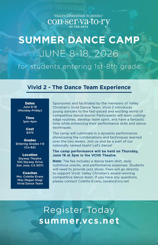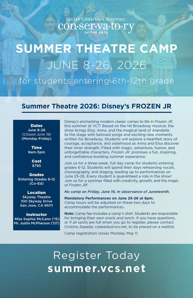 Valley Christian Schools’ mission is to provide a nurturing environment o ering quality education supported by a strong foundation of Christian values in partnership with parents, equipping students to become leaders to serve God, to serve their families, and to positively impact their communities and the world.