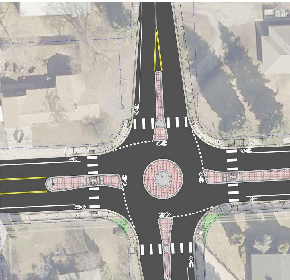 contributed photo Bowdish and 16th Roundabout change order makes larger central island, decreases the lane widths, and angles entry points to try to address excessive speeding.