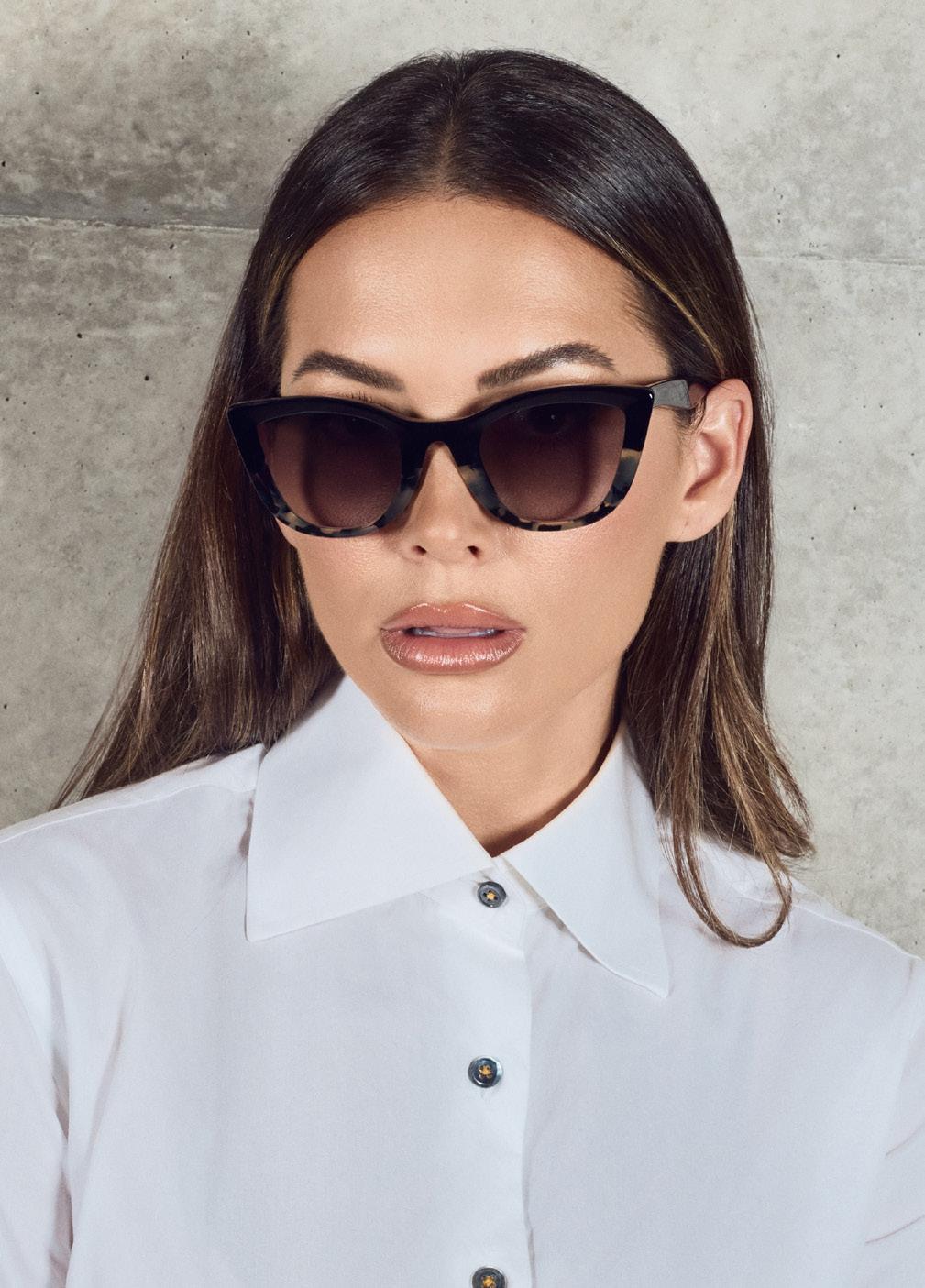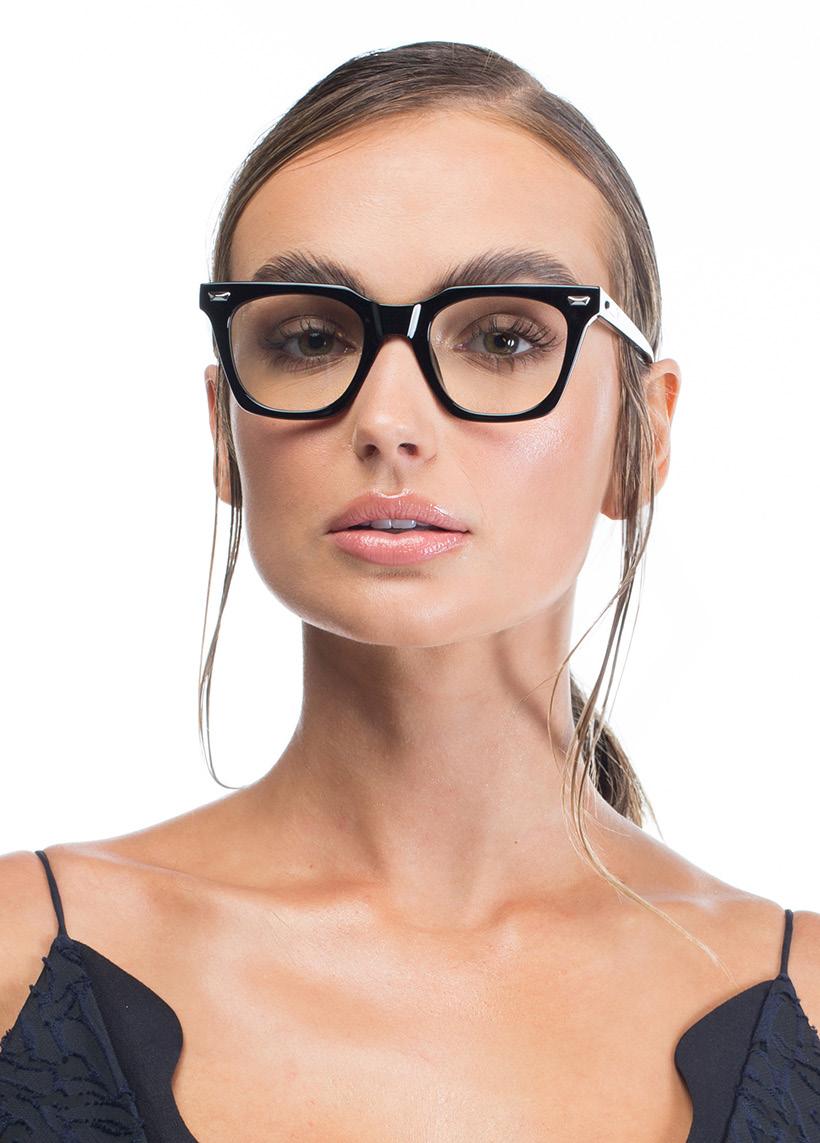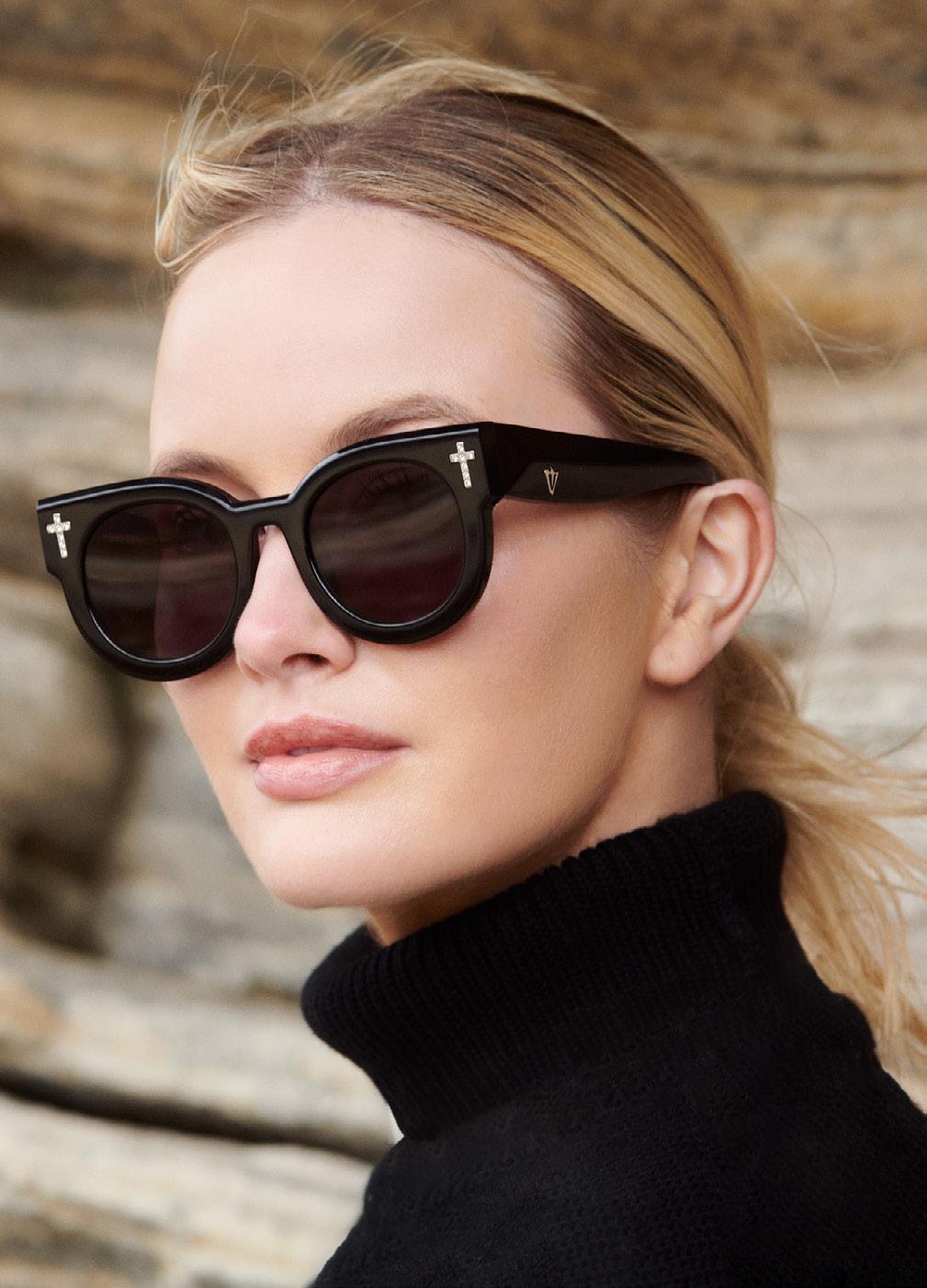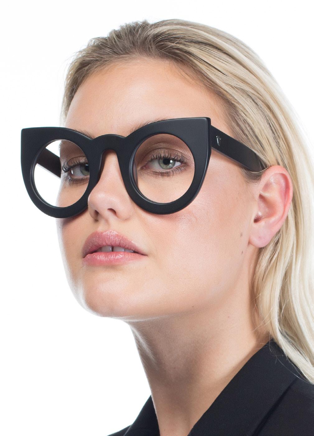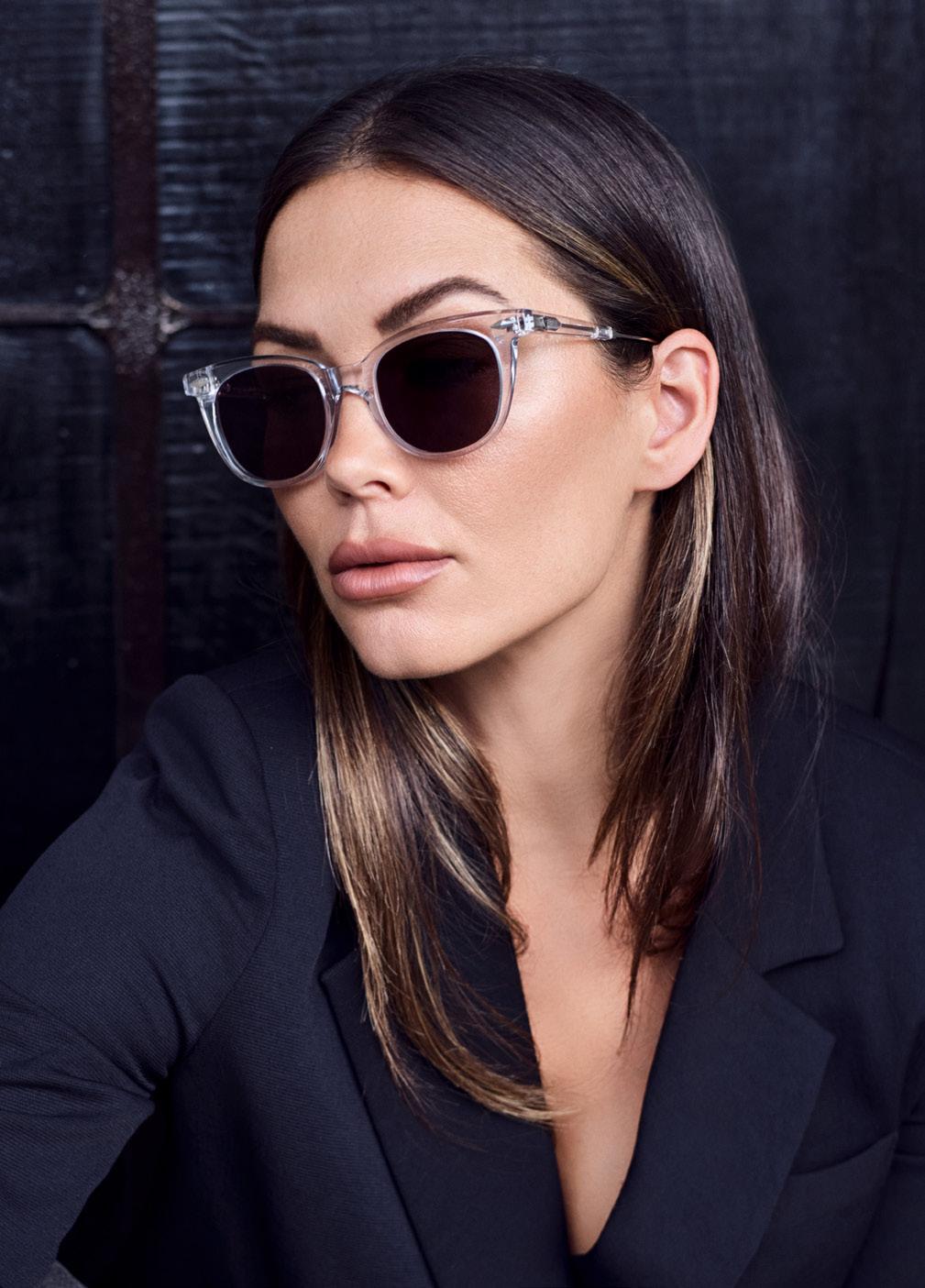 This fashion forward yet versatile style has quickly become one of our iconic shapes and is now available in our zero base (flat) face curve and zero base lenses. Our attention to detail and craftsmanship is heroed through the bevelled arm detail, premium Japanese acetate and metal cross inserts that have been inset with 14 Swarovski Crystals.