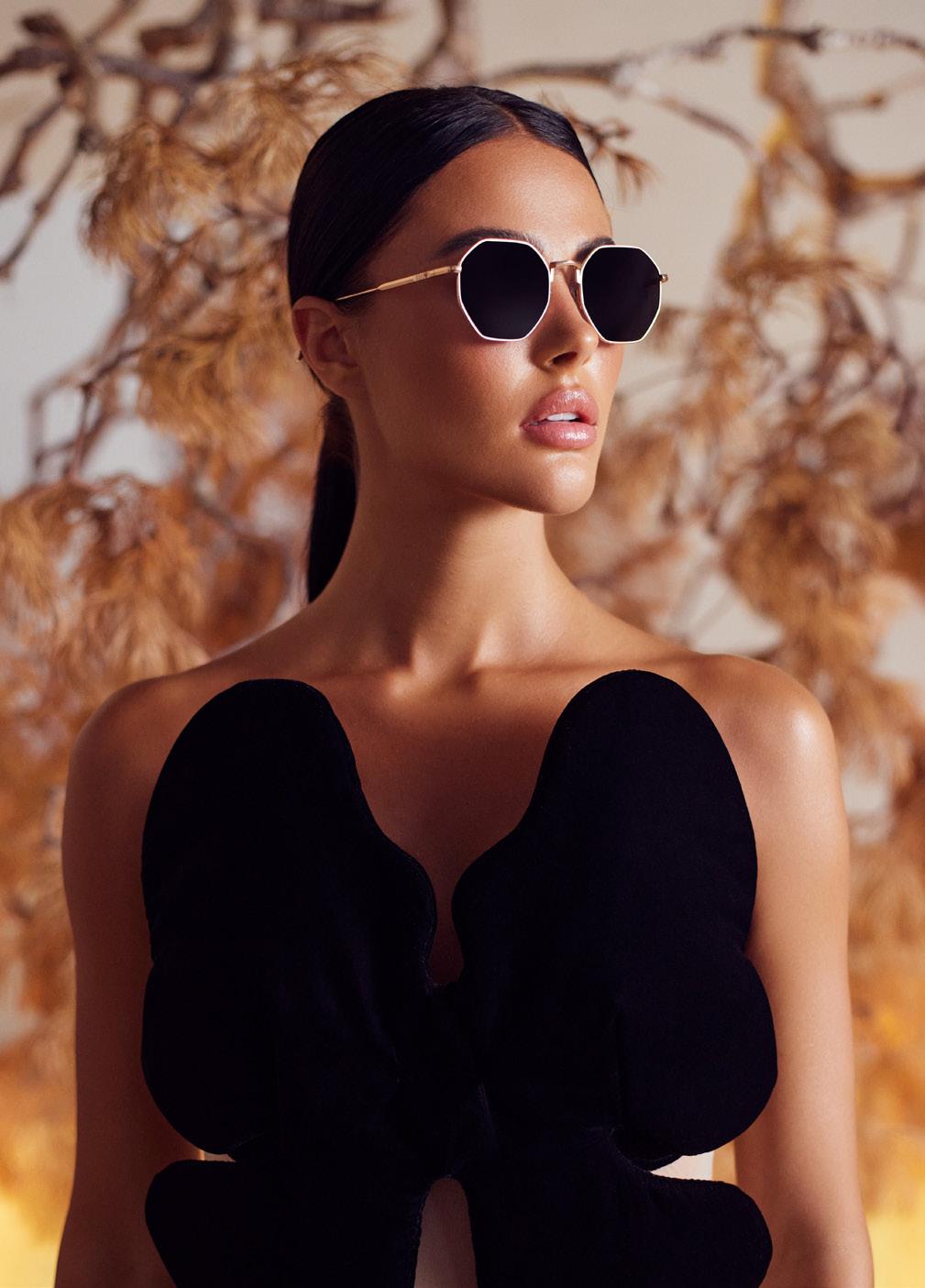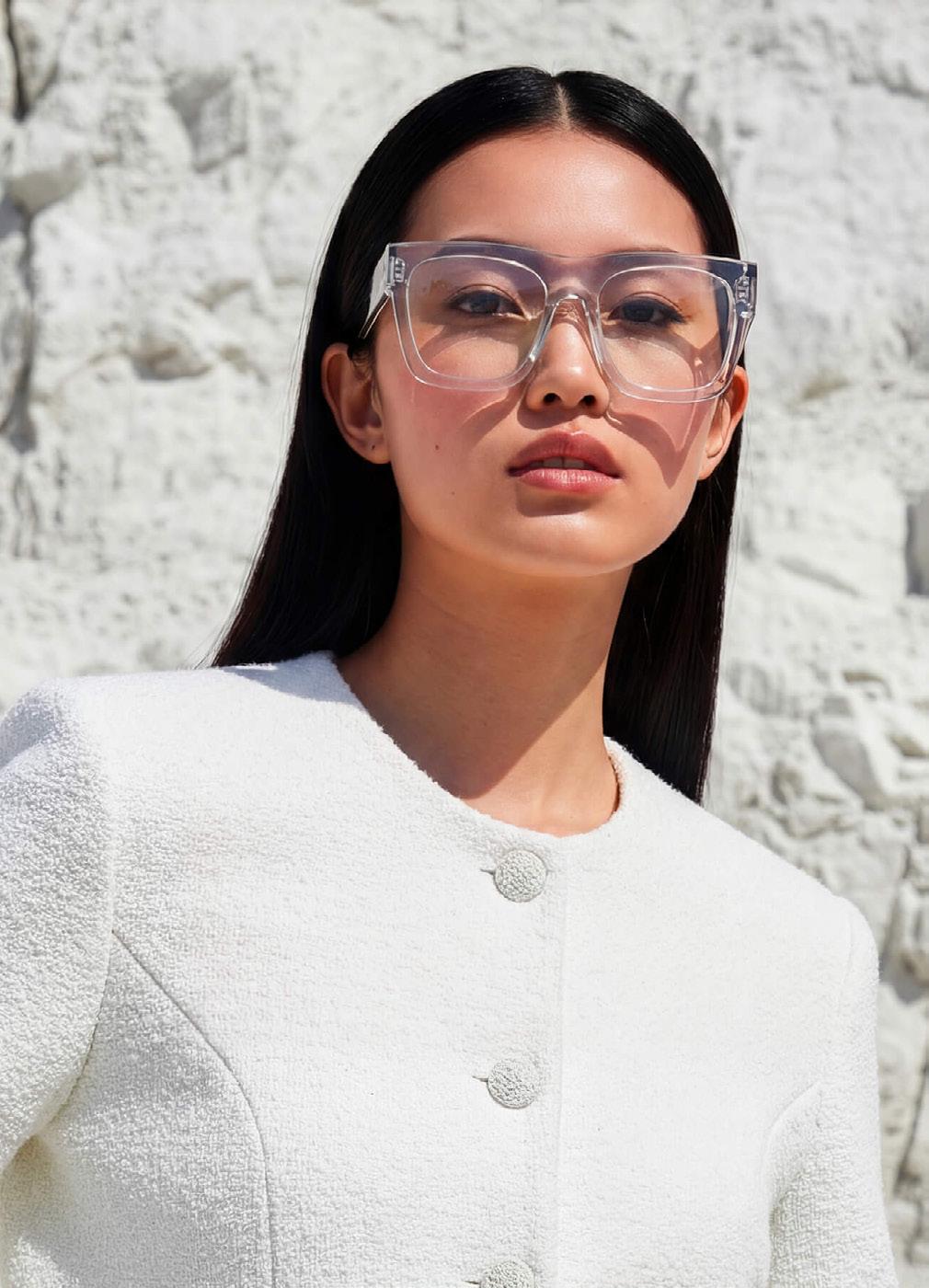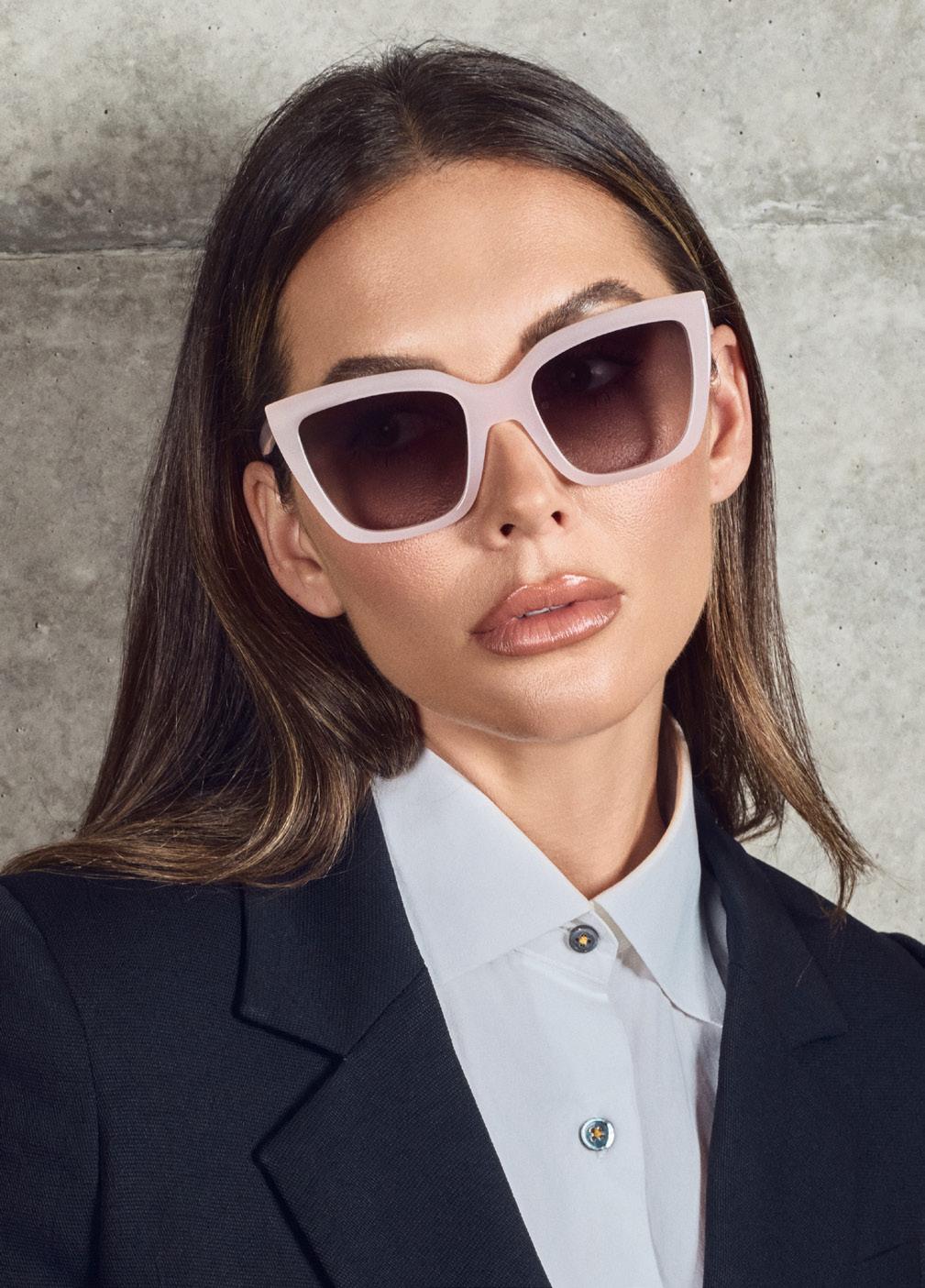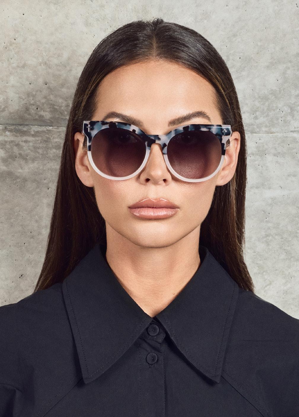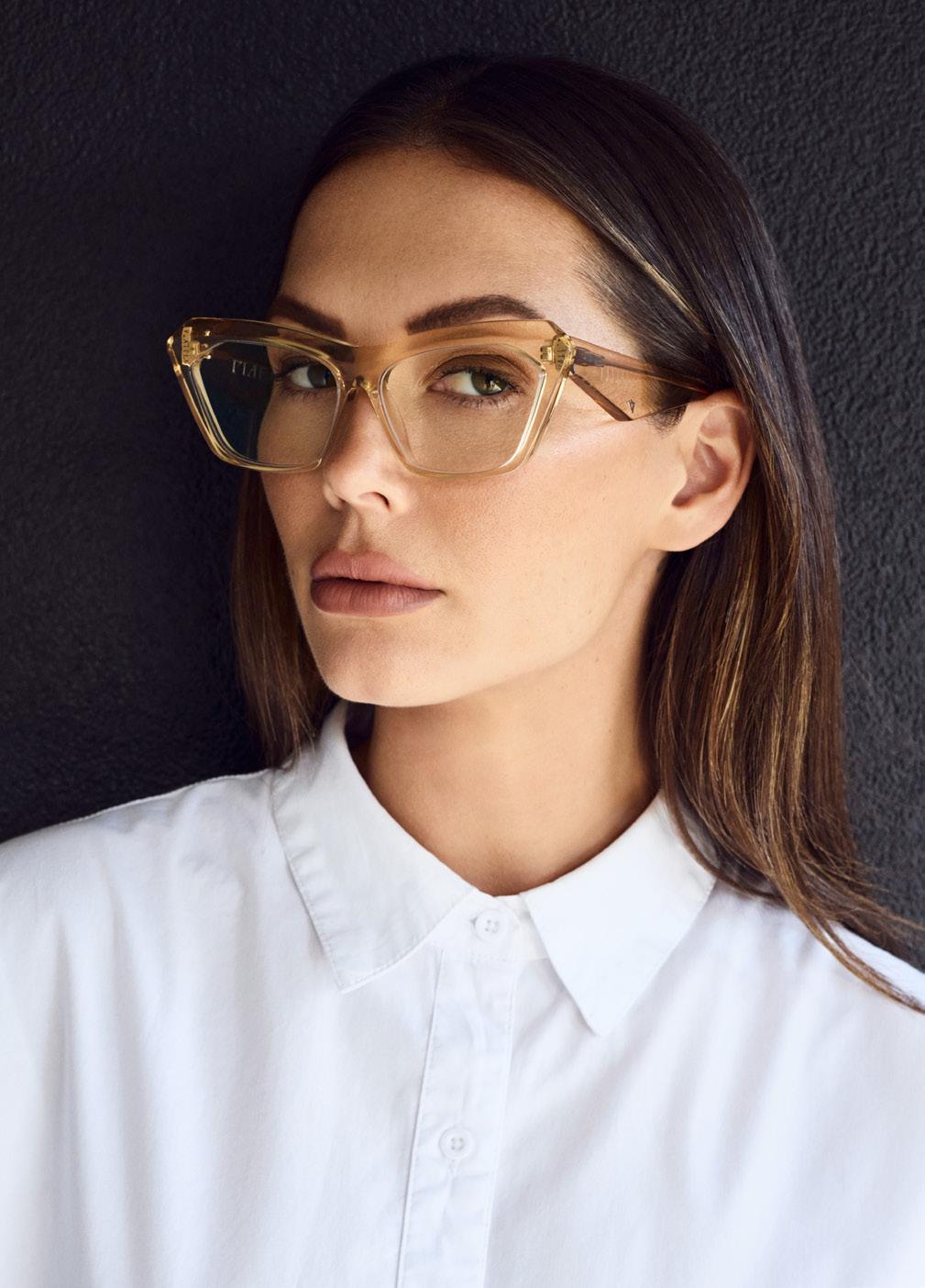 This fashion forward yet versatile style has quickly become one of our iconic shapes and is now available in our zero base (flat) face curve and zero base lenses. Our attention to detail and craftsmanship is heroed through the bevelled arm detail, premium Japanese acetate and metal cross inserts that have been inset with 14 Swarovski Crystals.