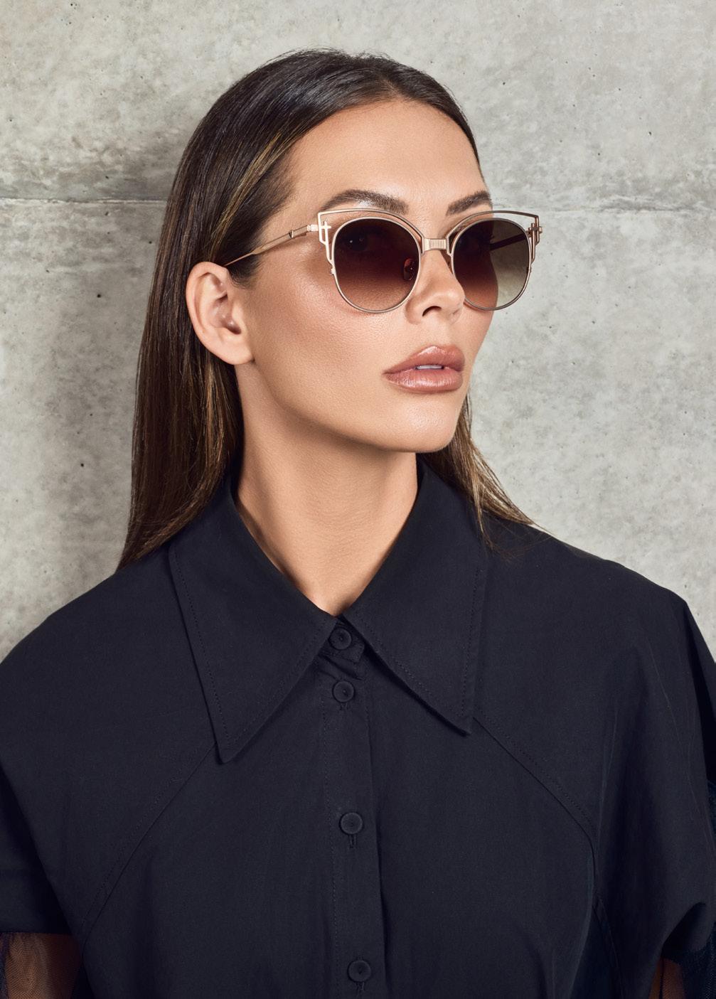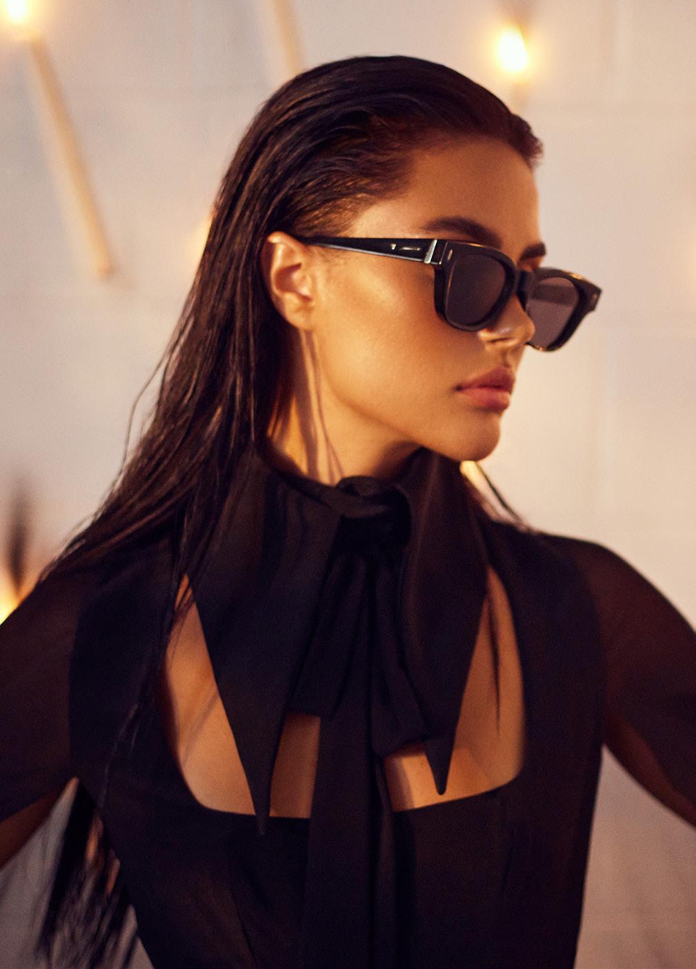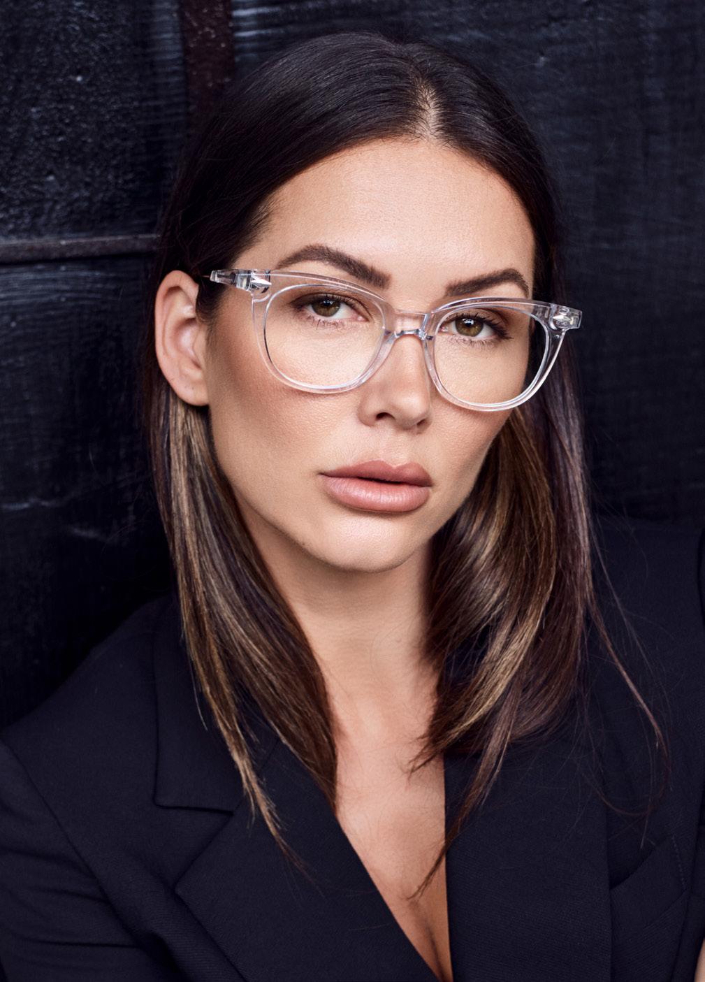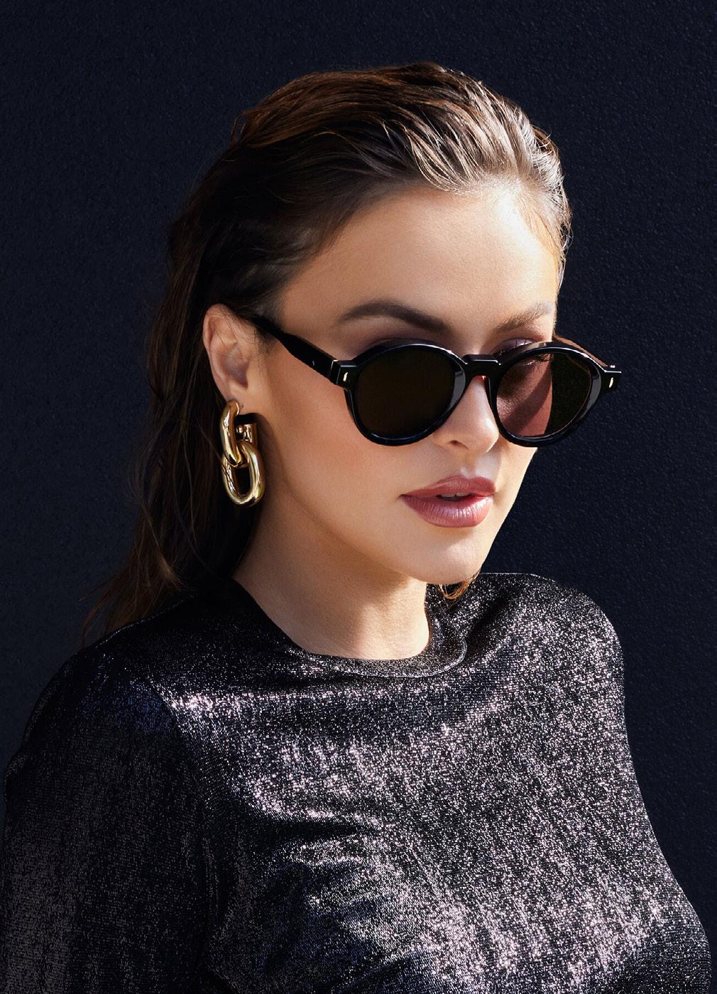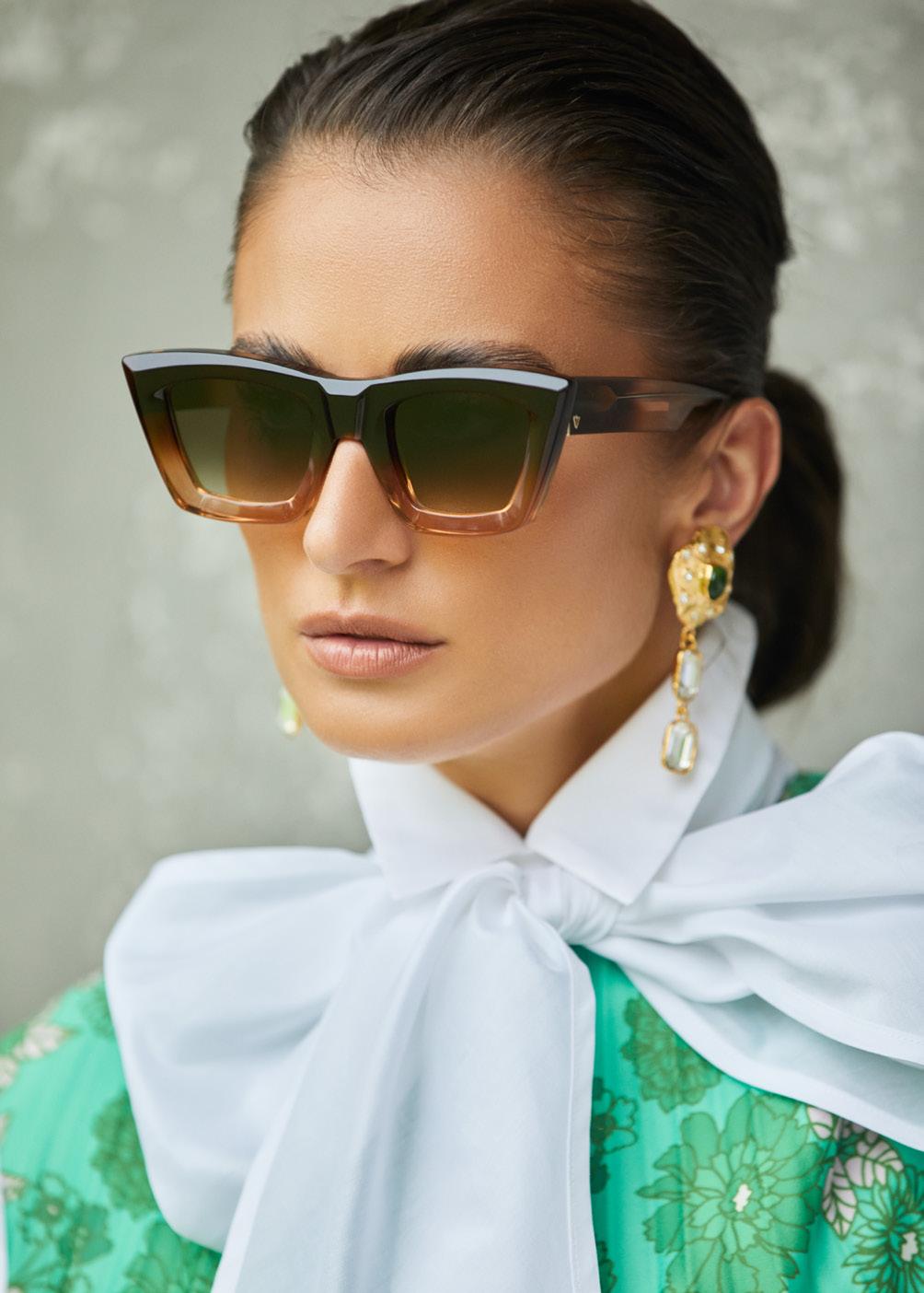This fashion forward yet versatile style has quickly become one of our iconic shapes and is now available in our zero base (flat) face curve and zero base lenses. Our attention to detail and craftsmanship is heroed through the bevelled arm detail, premium Japanese acetate and metal cross inserts that have been inset with 14 Swarovski Crystals.