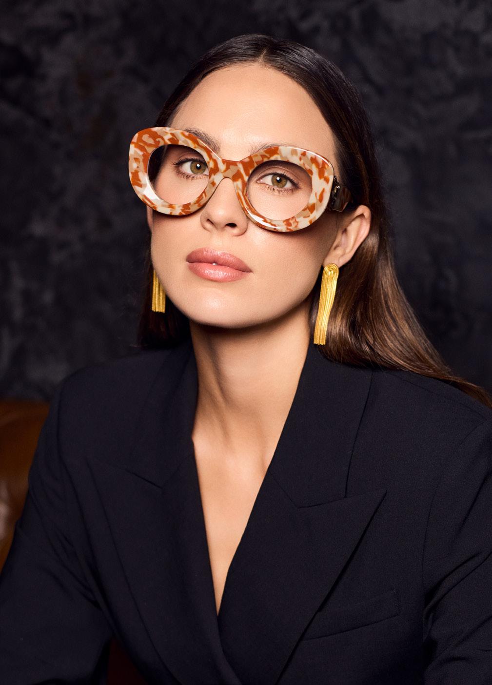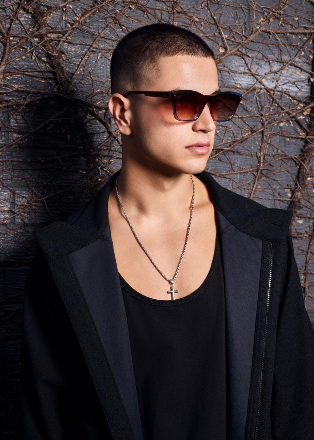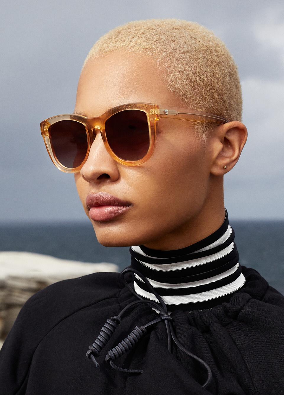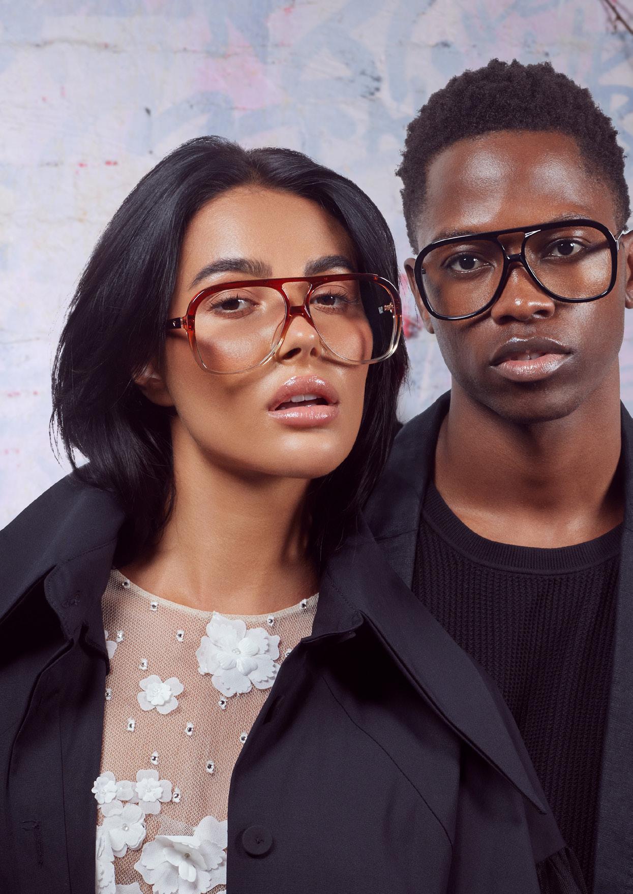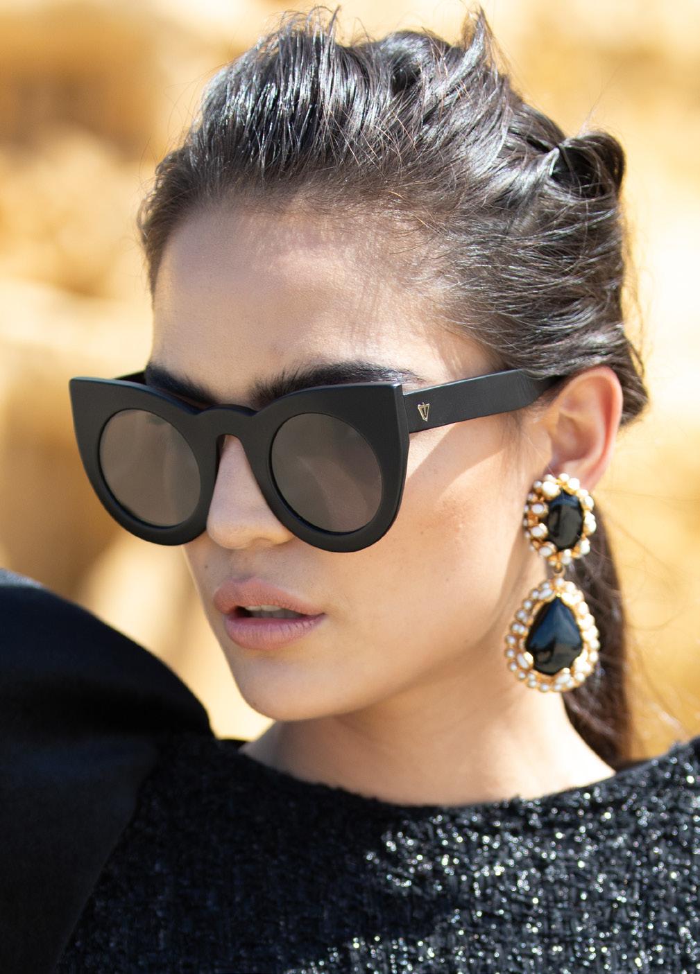 This fashion forward yet versatile style has quickly become one of our iconic shapes and is now available in our zero base (flat) face curve and zero base lenses. Our attention to detail and craftsmanship is heroed through the bevelled arm detail, premium Japanese acetate and metal cross inserts that have been inset with 14 Swarovski Crystals.