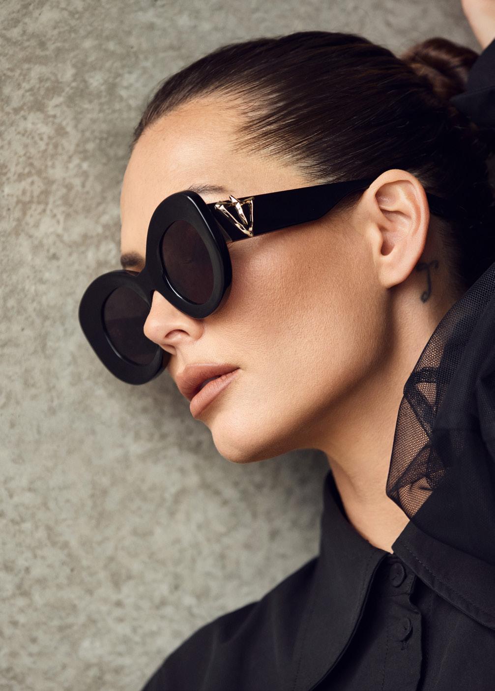 The Hollywood is an exquisite tribute to 1960s glamour. These oversized, rounded glasses feature elegant bevelled face detailing, showcasing their sophisticated design and unique silhouette. The addition of our new 24k gold icon badge detailing elevates its luxury appeal. The Hollywood is a statement of timeless elegance and charisma.
