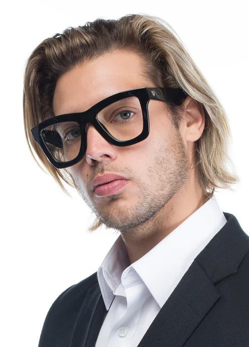 A bold, unisex frame boasting a rectangular silhouette and a 7mm thick front face. Featuring metal details and a transparent inner temple, the Alta is an approachable and wearable take on a statement frame.