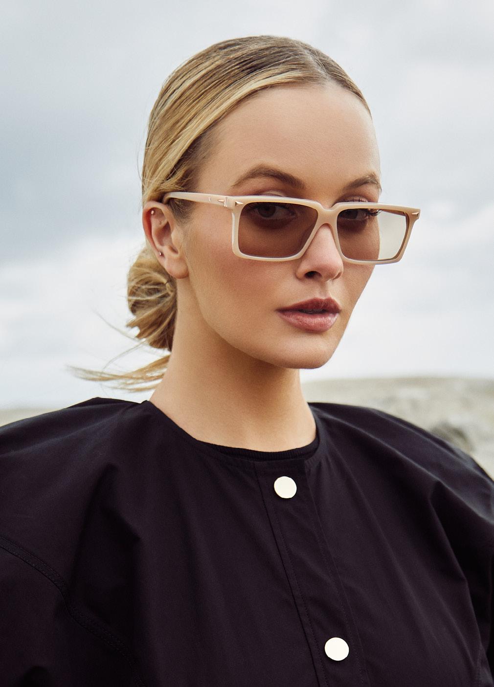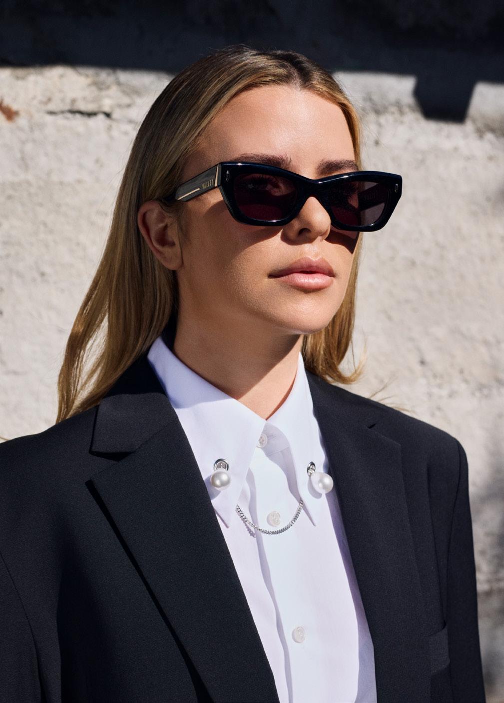 This fashion-forward yet versatile style has quickly become a VALLEY iconic shape. Our attention to detail and craftsmanship is heroed through bevelled arm details and metal cross inserts creating a unique yet easy-wearing aesthetic. SLIGHTLY OVERSIZED, METAL CROSS DETAIL