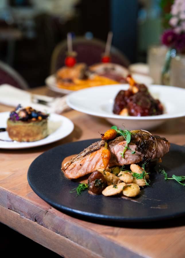 Today’s guests can view the wood-burning oven and open charcoal-fired grill through a glass wall in the restaurant’s state-of-theart kitchen. The menu showcases farm-to-table Italian cuisine, including wood-grilled branzino, lobster and mushroom risotto and pizza with pancetta or braised short rib. Boasting one of the largest wine lists in Pennsylvania, SAVONA’s collection of more than 1,200