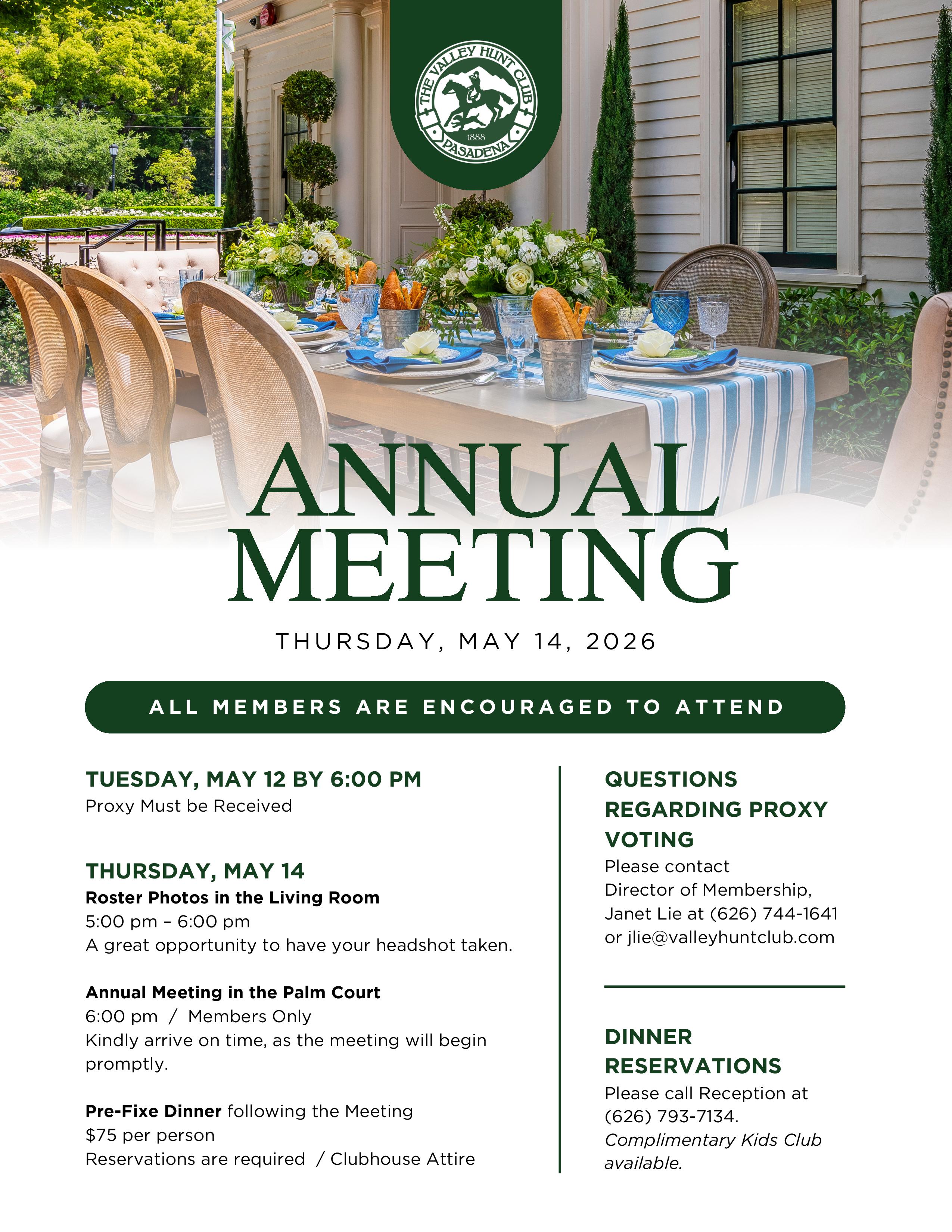 Thursday, May 14 / 5:00 pm – 6:00 pm Roster Photos 6:00 pm Annual Meeting