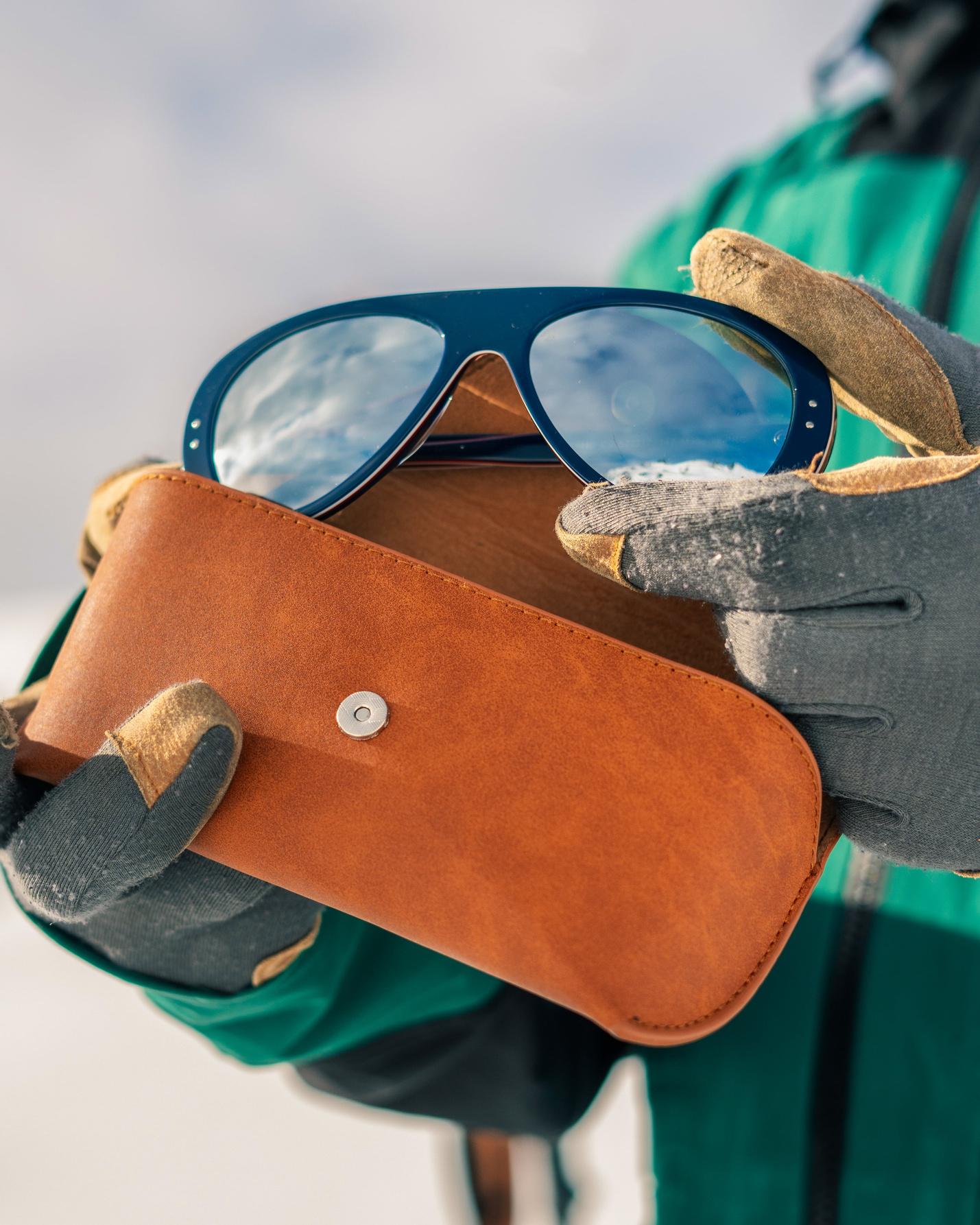 The Heron Ocean combine a unique polarized lens with the protective abilities of traditional glacier sunglasses. Using leather side shields to block out sunlight reflections and glare, these glasses are fit for ocean activities.