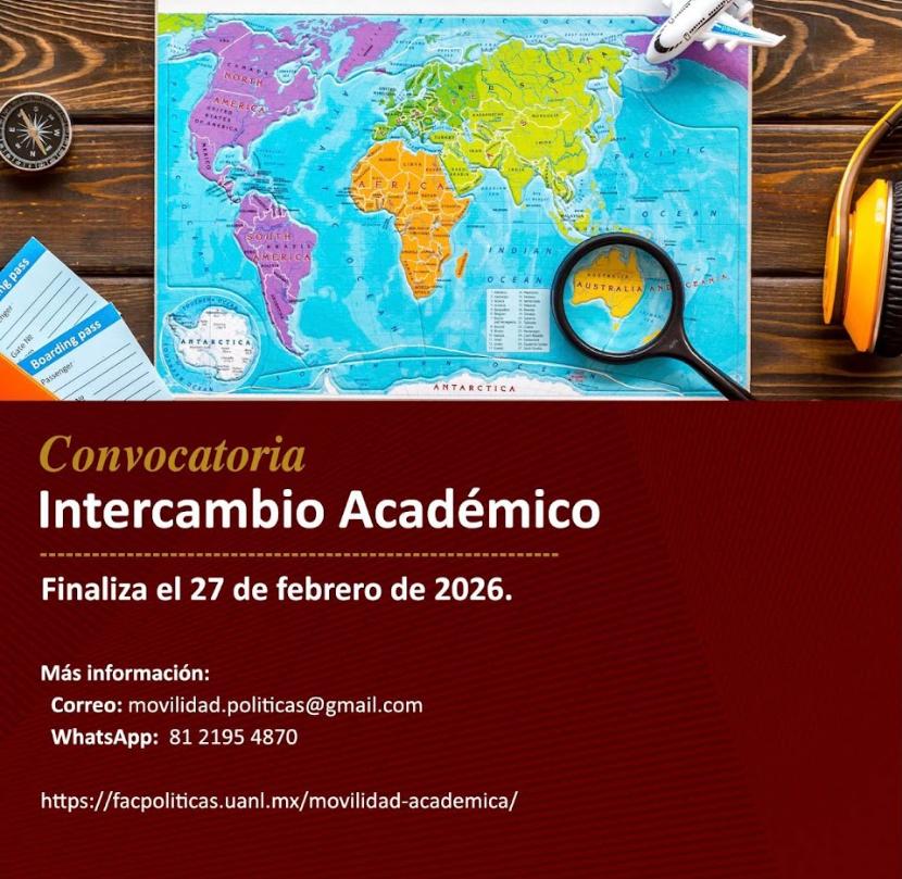 La Universidad Autónoma de Nuevo León, a través de la Facultad de Ciencias Políticas y Relaciones Internacionales, invita a su comunidad estudiantil a formar parte del Programa de Intercambio Académico, una oportunidad única para ampliar horizontes académicos, culturales y profesionales en instituciones educativas del extranjero.