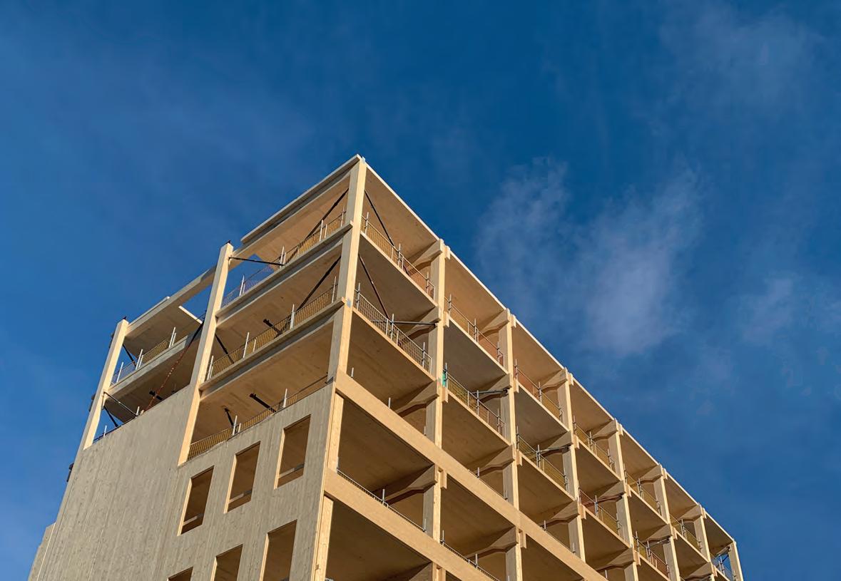– Den store trefasaden på Mjøstårnet er blant annet delt inn i seksjoner for å forhindre at fasaden bidrar til brannspredning på tvers av etasjene. >>