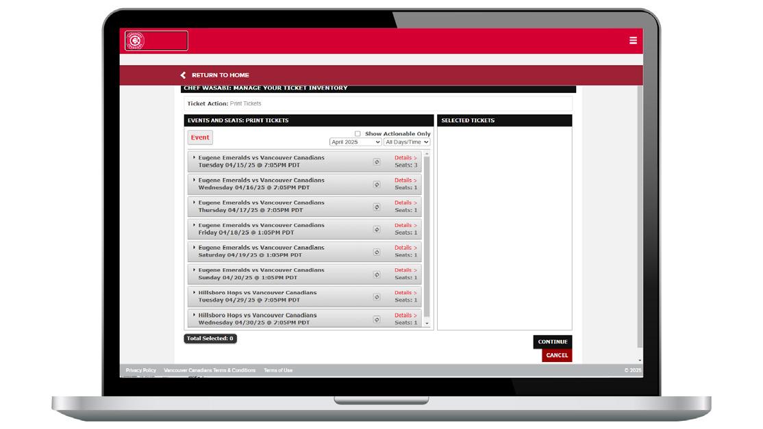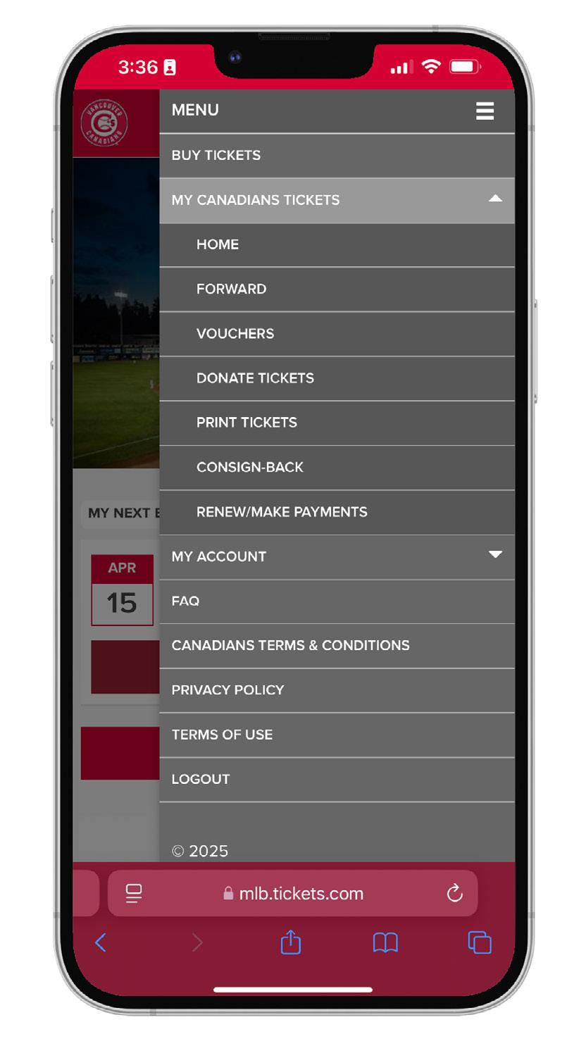YOUR MY C’S TICKETS ACCOUNT IS YOUR HOME FOR ALL THINGS CANADIANS TICKETS. THROUGH YOUR ACCOUNT, YOU CAN VIEW, PRINT, FORWARD, DONATE AND CONSIGN YOUR TICKETS.