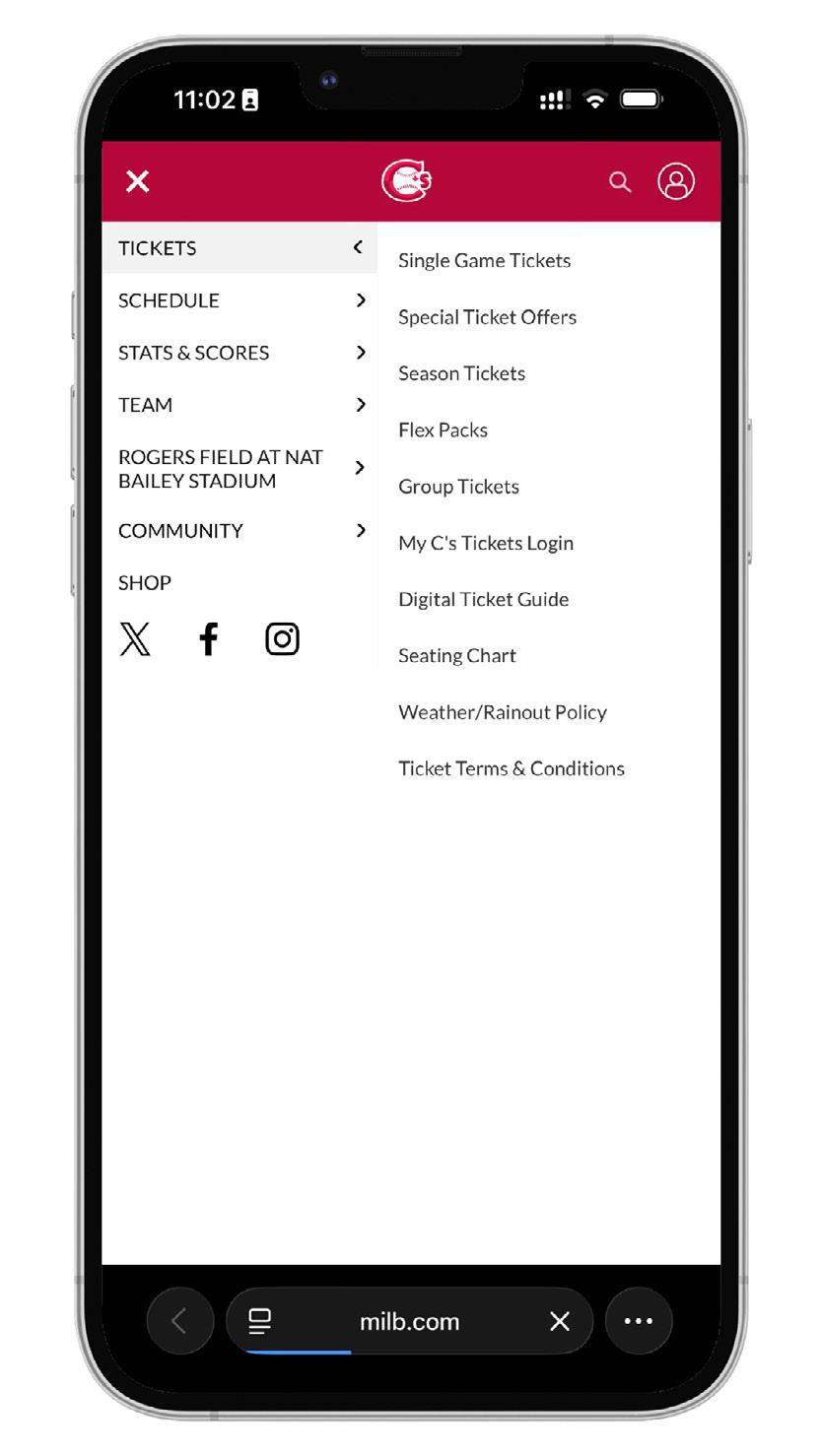 1. Go to CanadiansBaseball.com. Click on “MY C’S TICKETS LOGIN” located in the main menu.