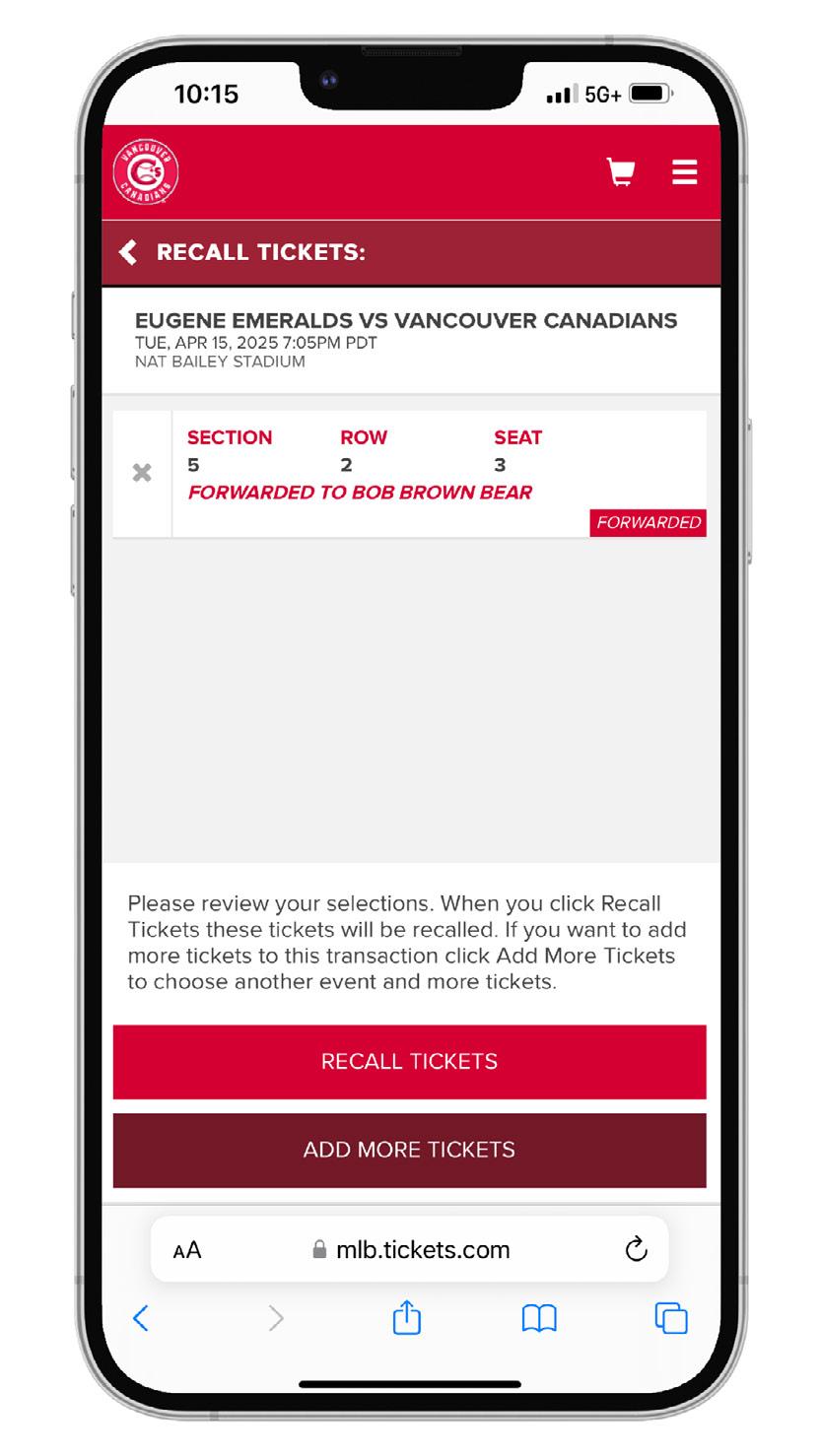4. Review and confirm the ticket(s) you’re recalling. If needed, you can also add any additional tickets you’d like to recall. Once you’re sure, confirm your selection, select “RECALL TICKETS.”