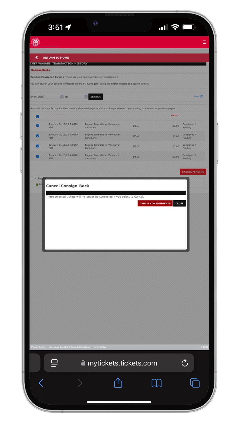 4. Confirm the tickets you’ve selected. If correct, select “Consign Tickets”.